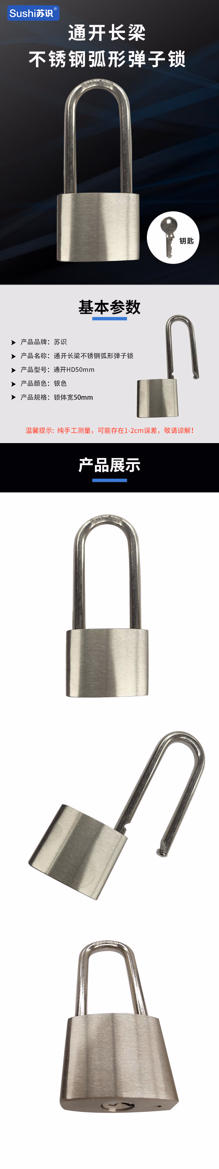 苏识 通开HD50mm 长梁不锈钢 弧形 弹子锁 (计价单位:个) 银色