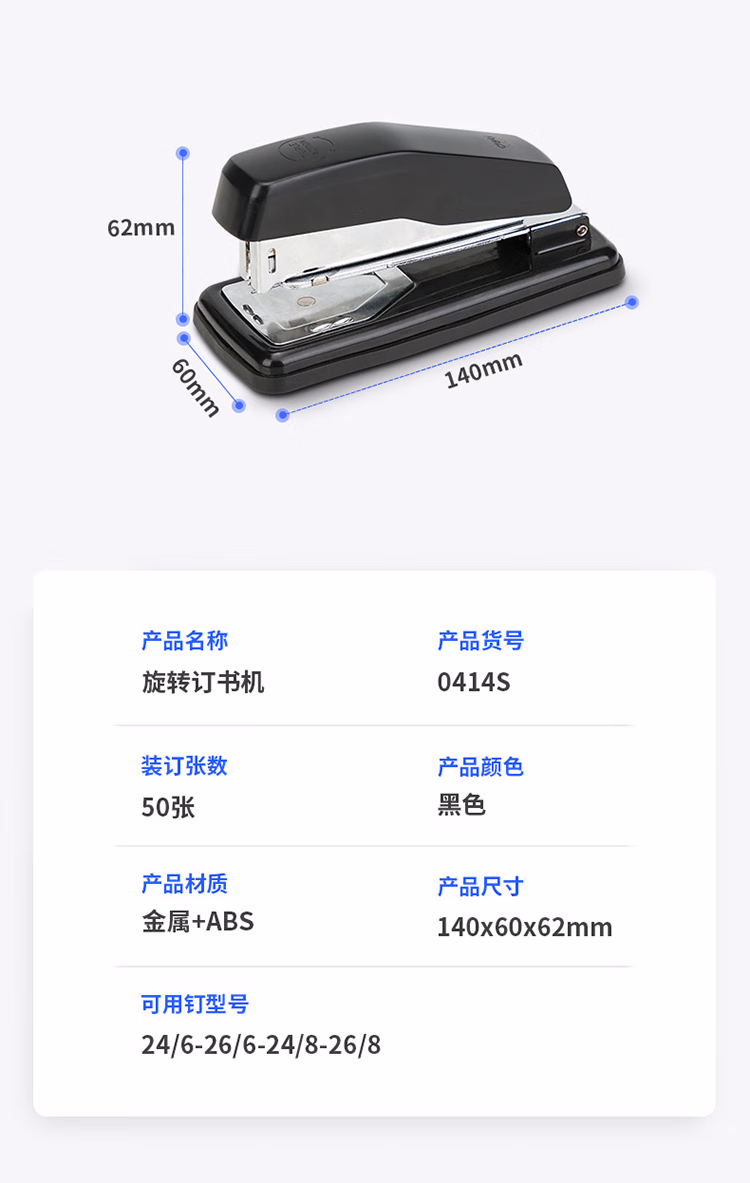 得力(deli) 0414S 订书机 1.00 个/台 (计价单位:台) 黑色