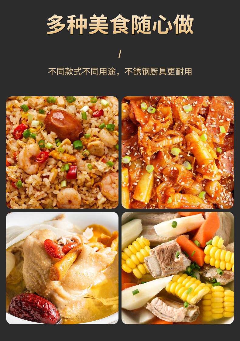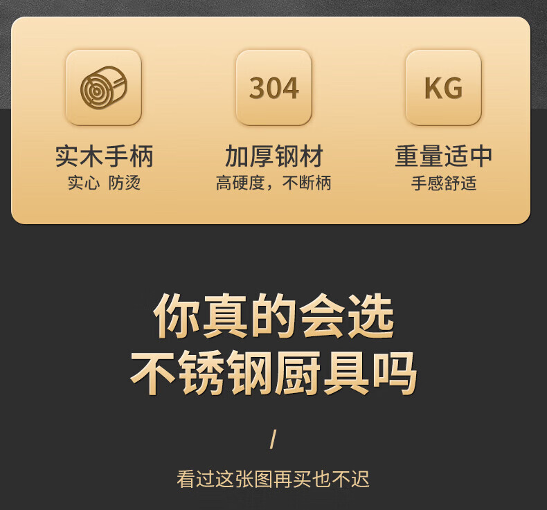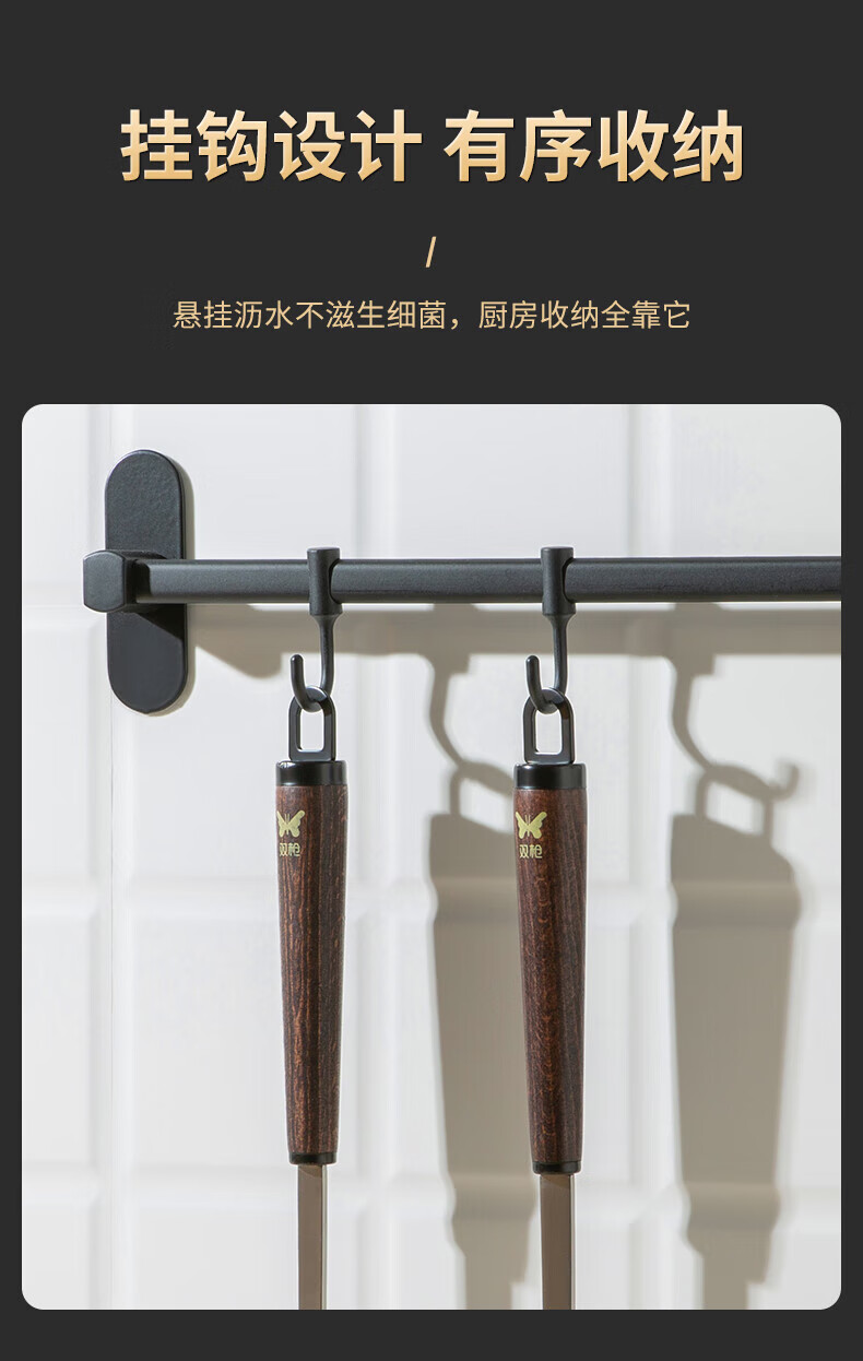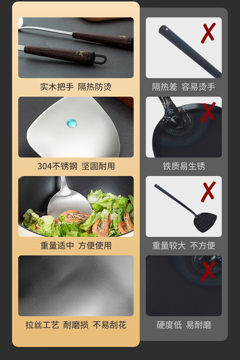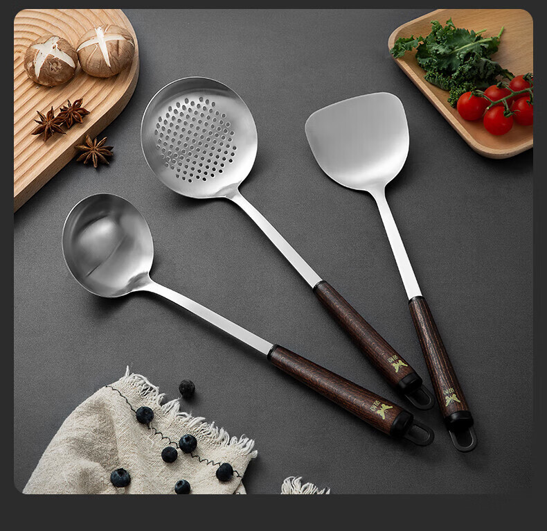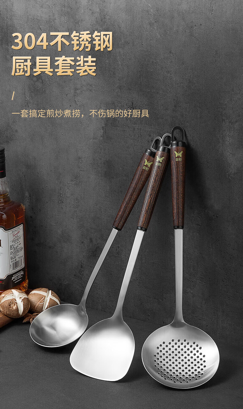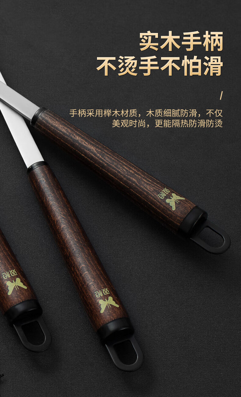 双枪304不锈钢锅铲炒菜铲子家用榉木手柄汤勺漏勺不粘锅专用套装 单位:套