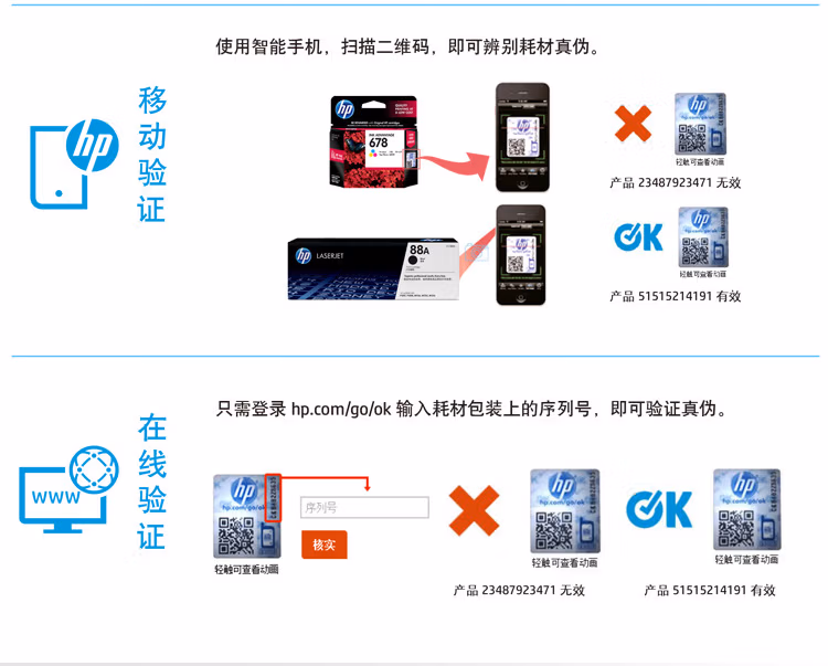 注:使用非原装耗材产生的机器故障,惠普不负责保修