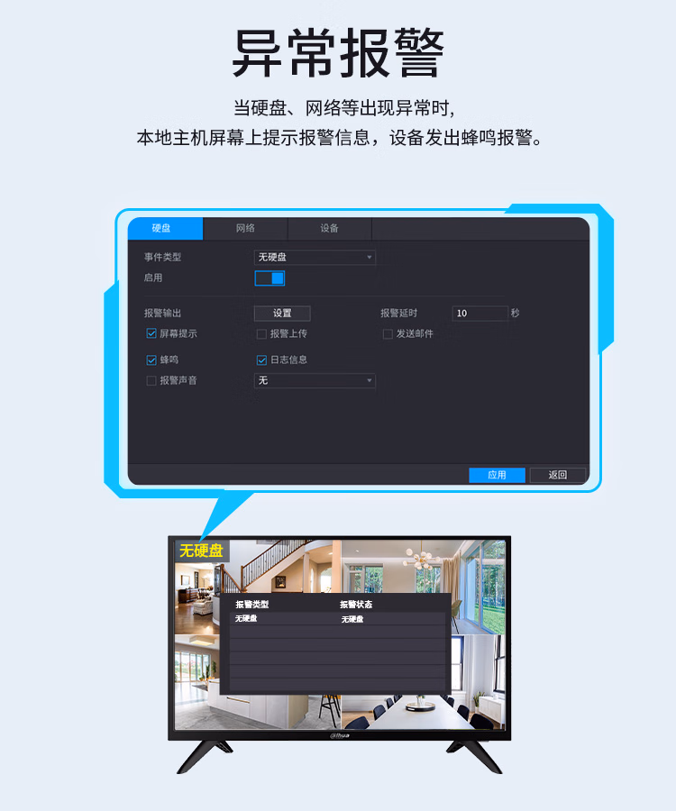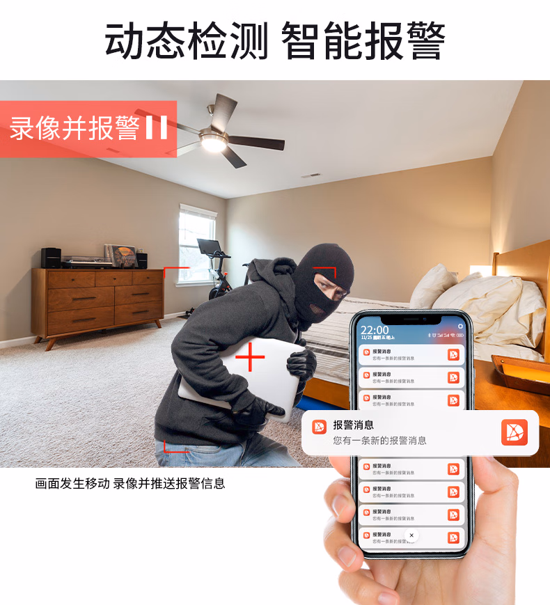 • 报警方式:声音报警,手机推送