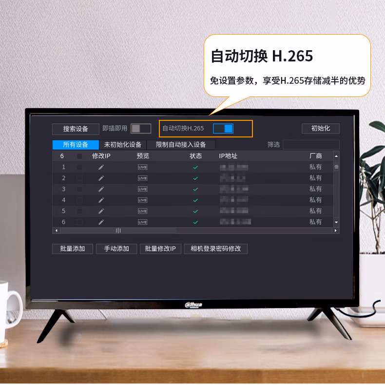 • 存储编码:H.265