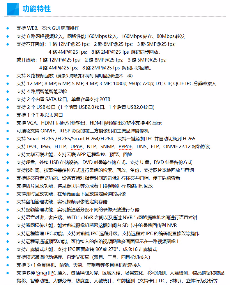 • 智能识别:人脸识别,车辆识别,移动识别,其他