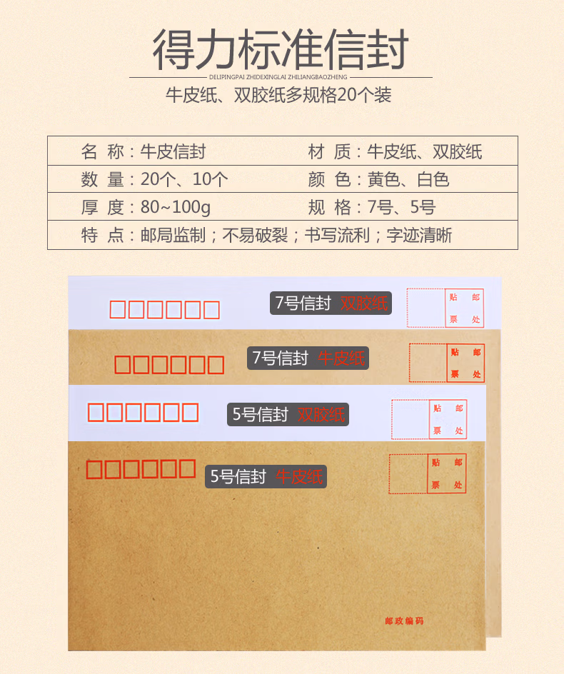 得力(deli) 3424 5号 信封 20.00 个/包 (计价单位:包) 混色