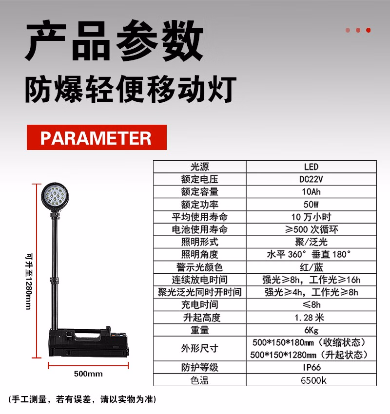 光源速 SW2630 22.2V 50W IP66 6000K 防爆轻便移动灯 (计价单位:台) 黑色