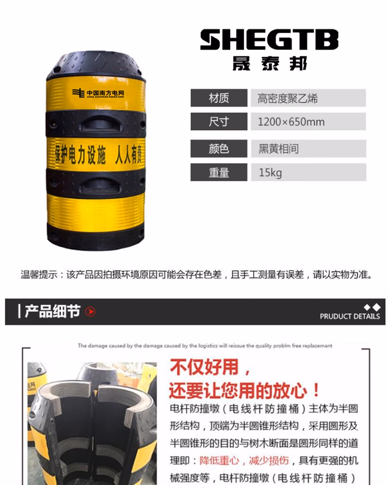 晟泰邦STB-101电线杆防撞桶 电线杆反光防撞墩 南方电网高压线杆防撞桶 (内容可定制)1200x650mm 单位:个