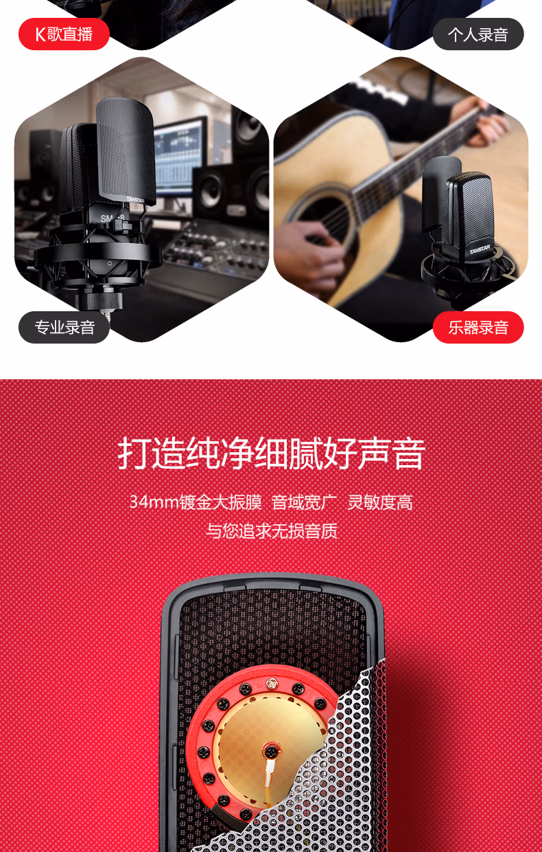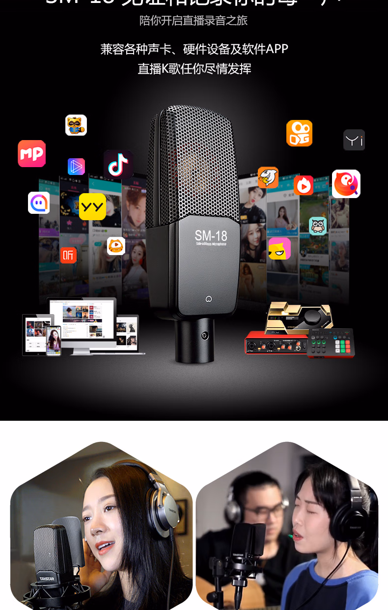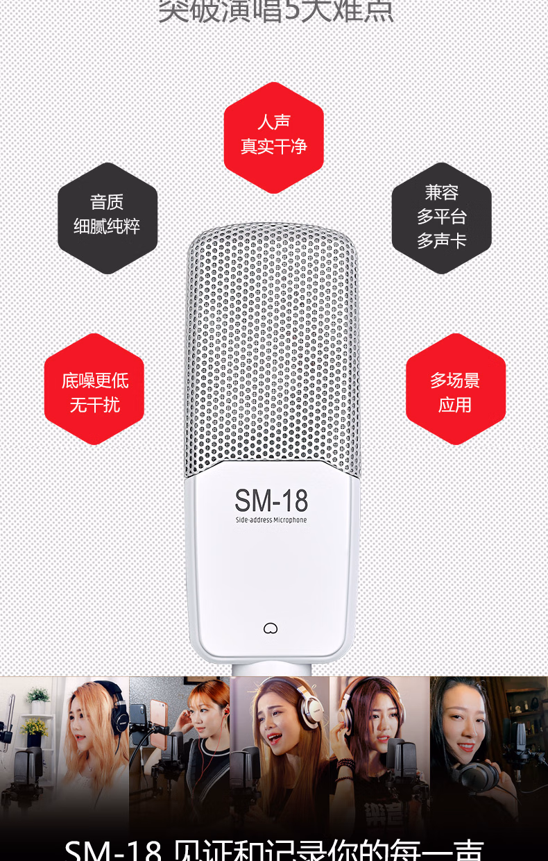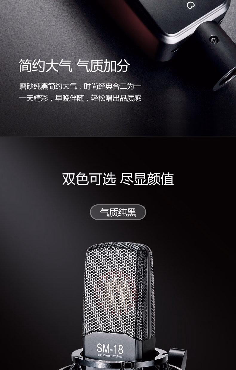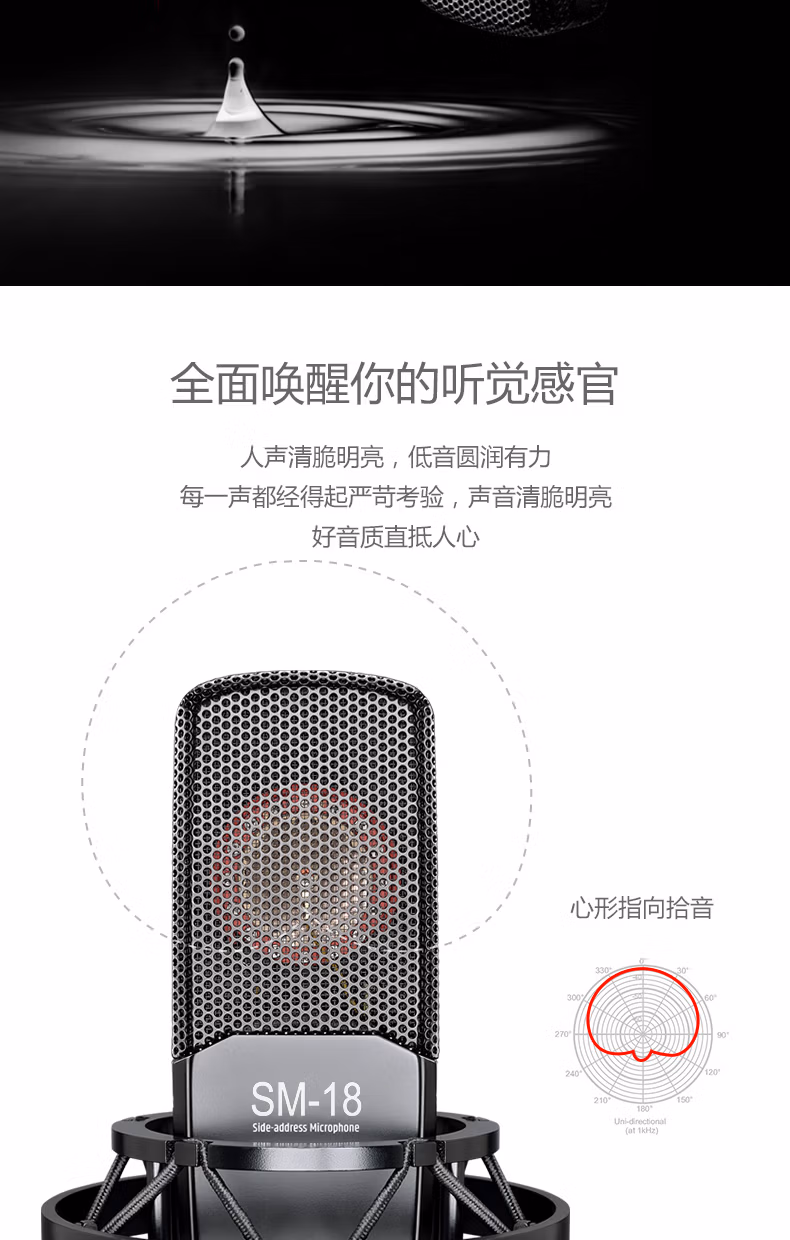 • 产品特性:有防喷网,支持桌面支架,支持外置声卡