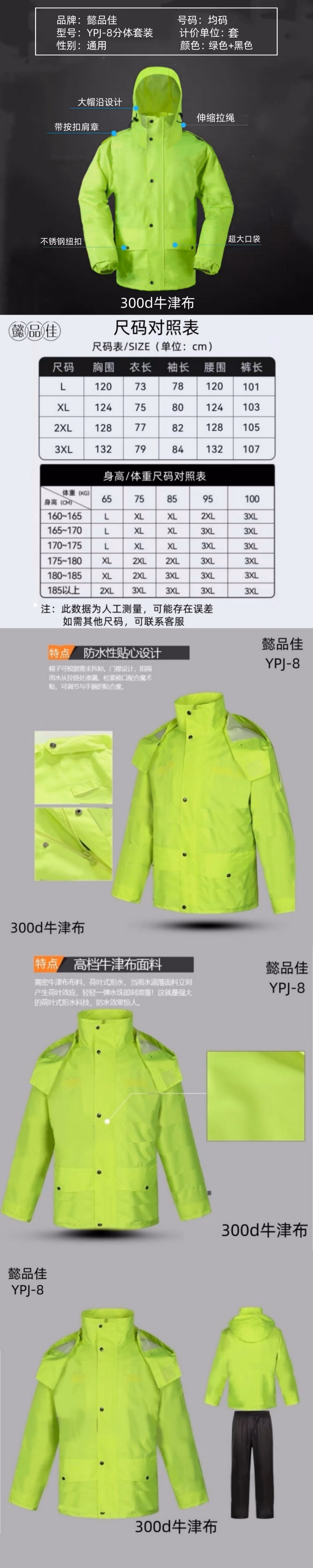 懿品佳 YPJ-8分体套装 雨衣 1.00 件/套 (计价单位:套) 绿色+黑色
