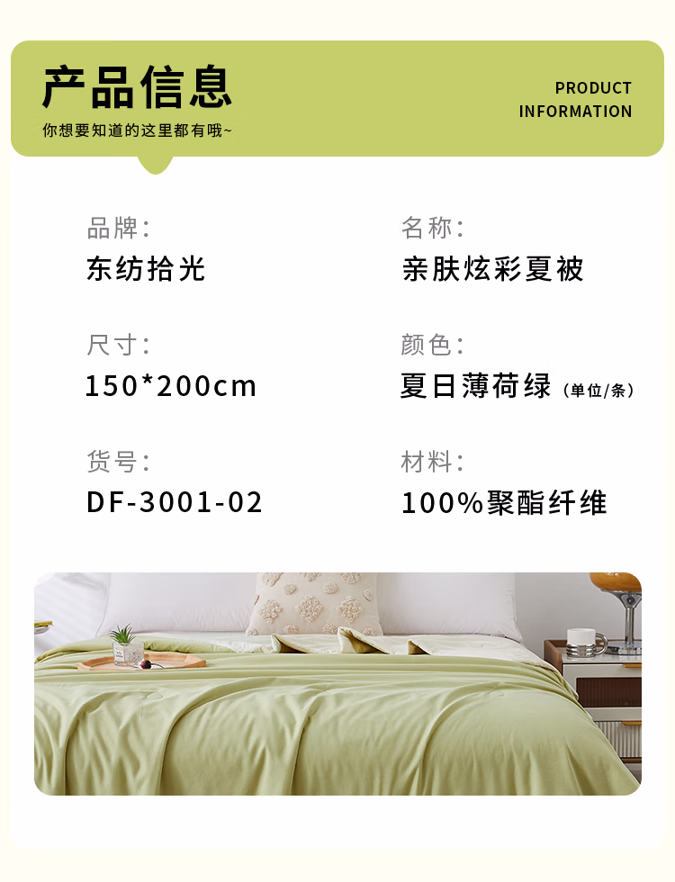 东纺拾光 DF3001-02 150*200cm 被子 1.00 件/条 (计价单位:条) 夏日薄荷绿
