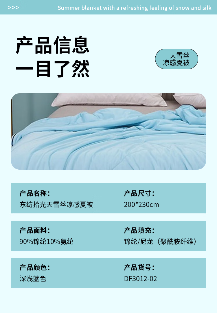 东纺拾光 DF3012-02 200*230cm天雪丝凉感夏被 被子 1.00 件/条 (计价单位:条) 深浅蓝色