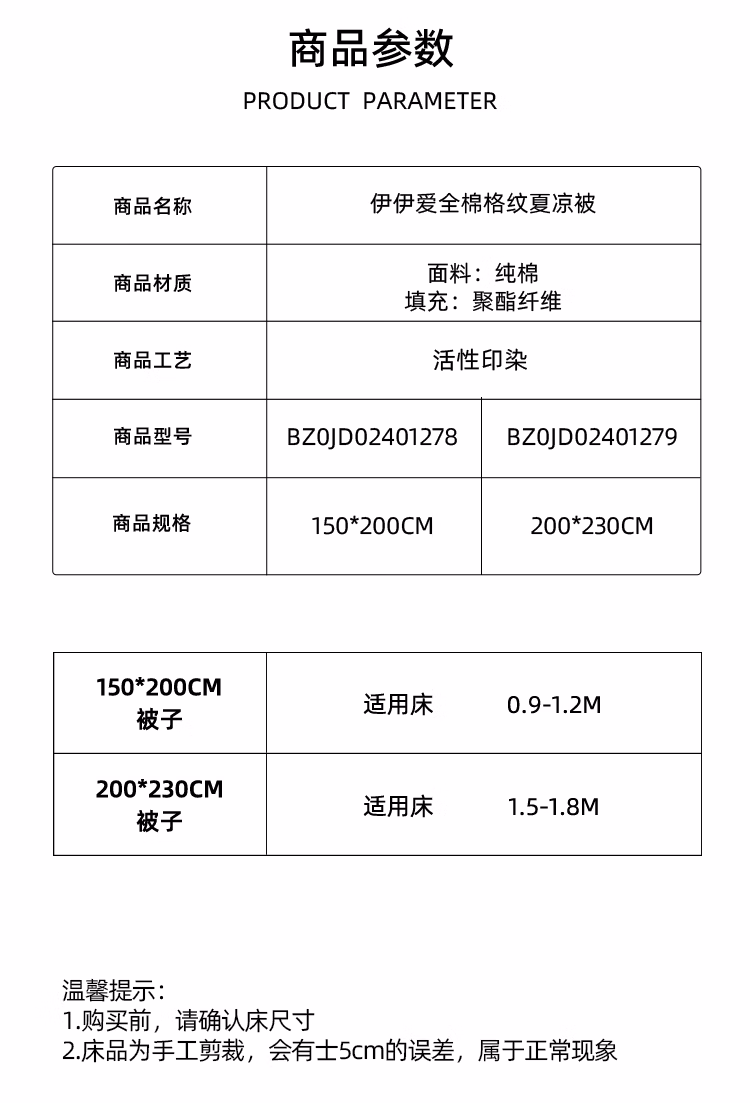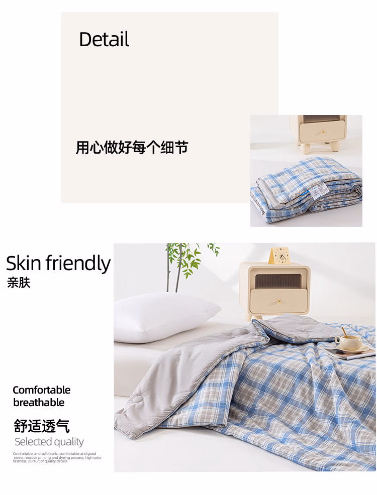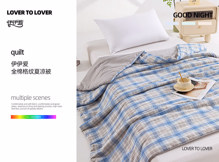 伊伊爱 BZ0JD02401278 150*200cm 全棉格纹夏凉被 被子 1.00 件/条 (计价单位:条) 格子