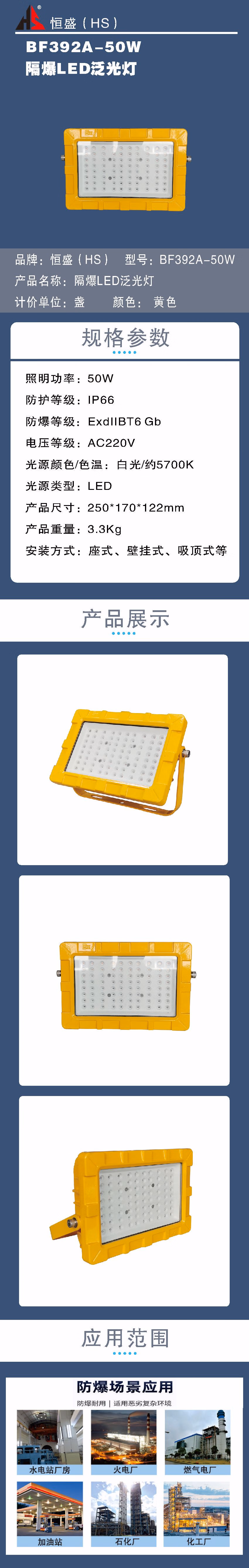 • 商品名称:恒盛(HS) BF392A-50W 隔爆LED泛光灯(计价单位:盏)黄色