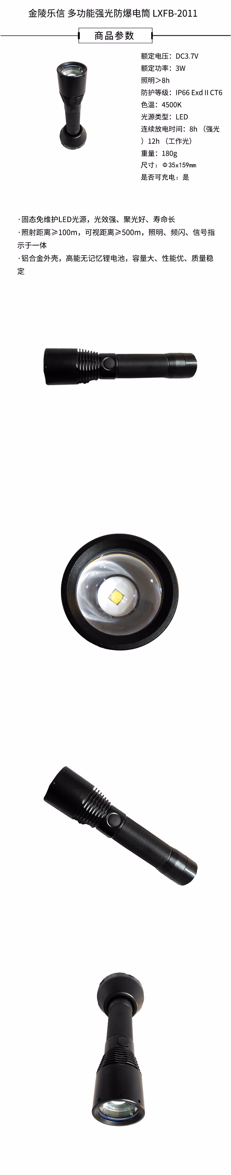 金陵乐信 LXFB-2011 3W DC3.7V IP66 白光4500K LED光源 ExdIICT6 多功能强光防爆电筒 1.00 个/支 (计价单位:支) 黑色