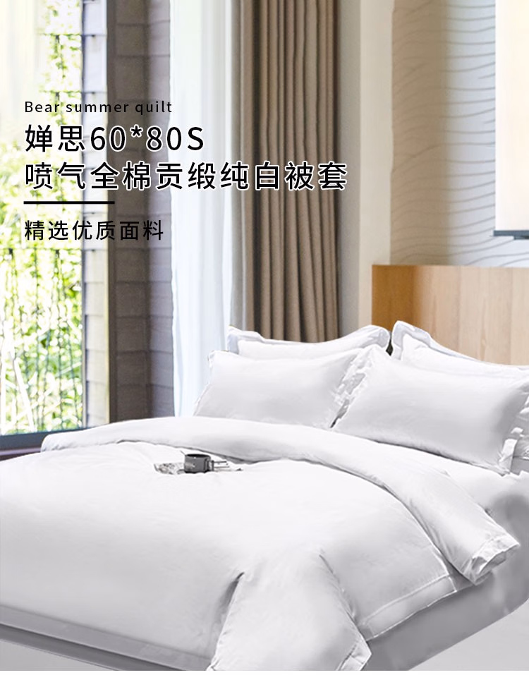 婵思 SDJD0230051 240*250cm 60*80S喷气全棉贡缎被套 1.00 件/个 (计价单位:个) 纯白