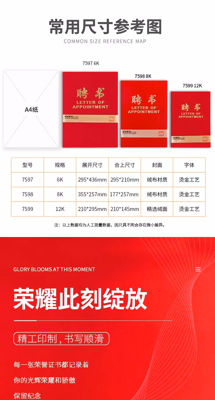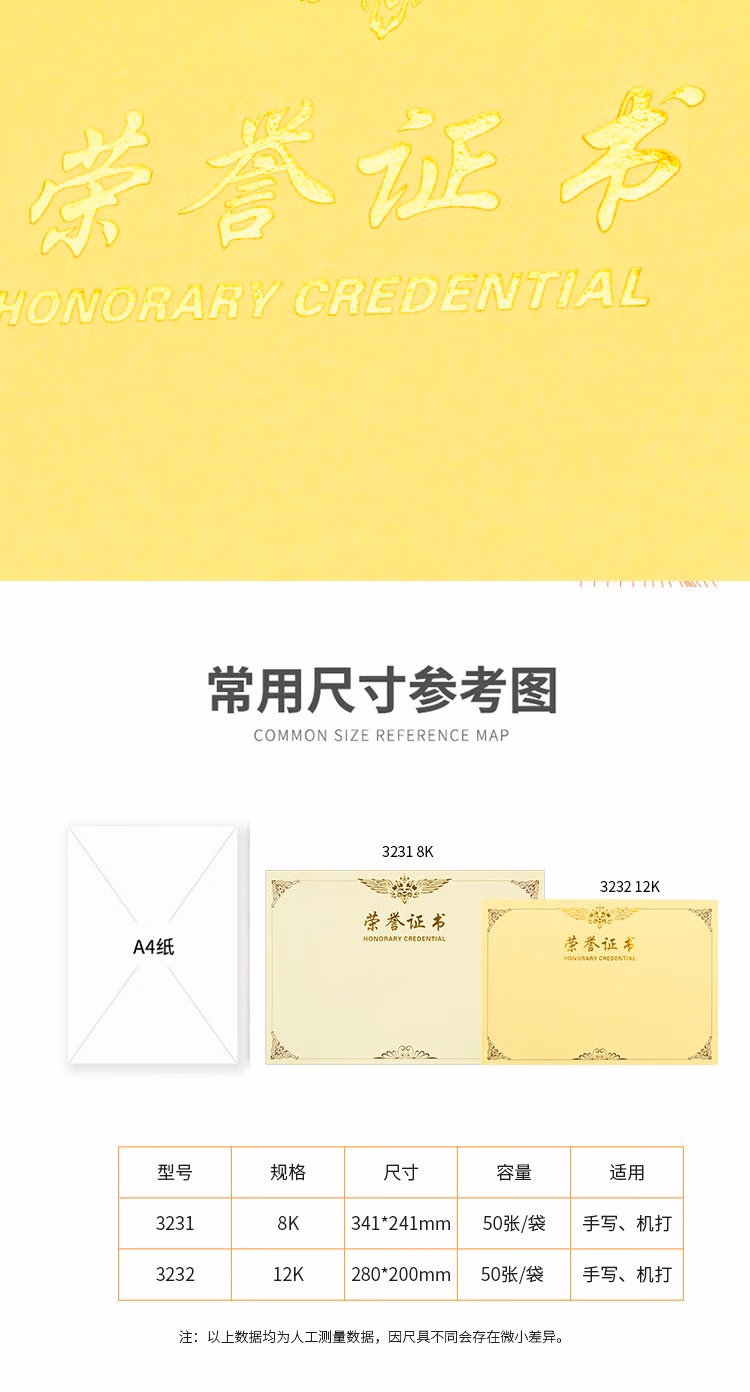 得力(deli) 7579(荣光)16K 荣誉证书 1.00 个/本 (计价单位:本) 红