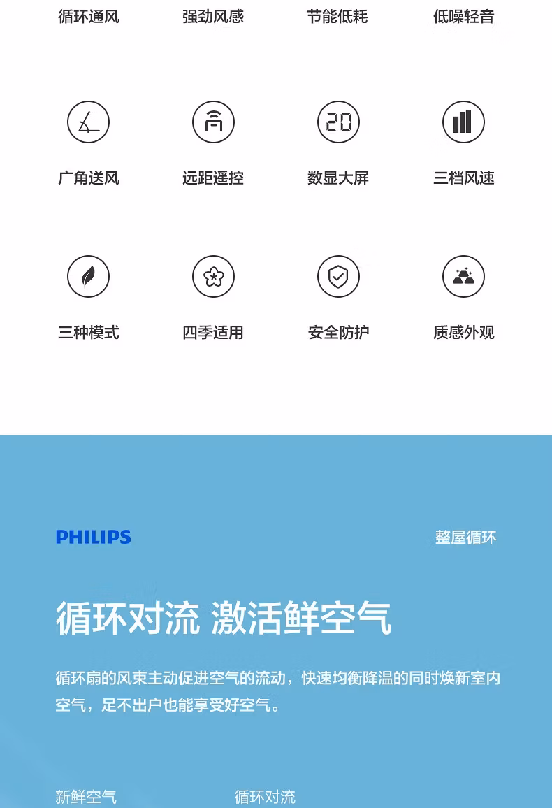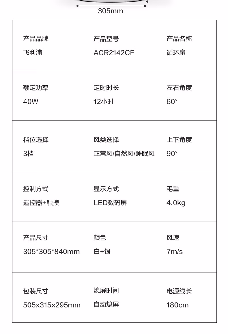 飞利浦(Philips) ACR2142CF 40W 循环扇 (计价单位:台) 白色