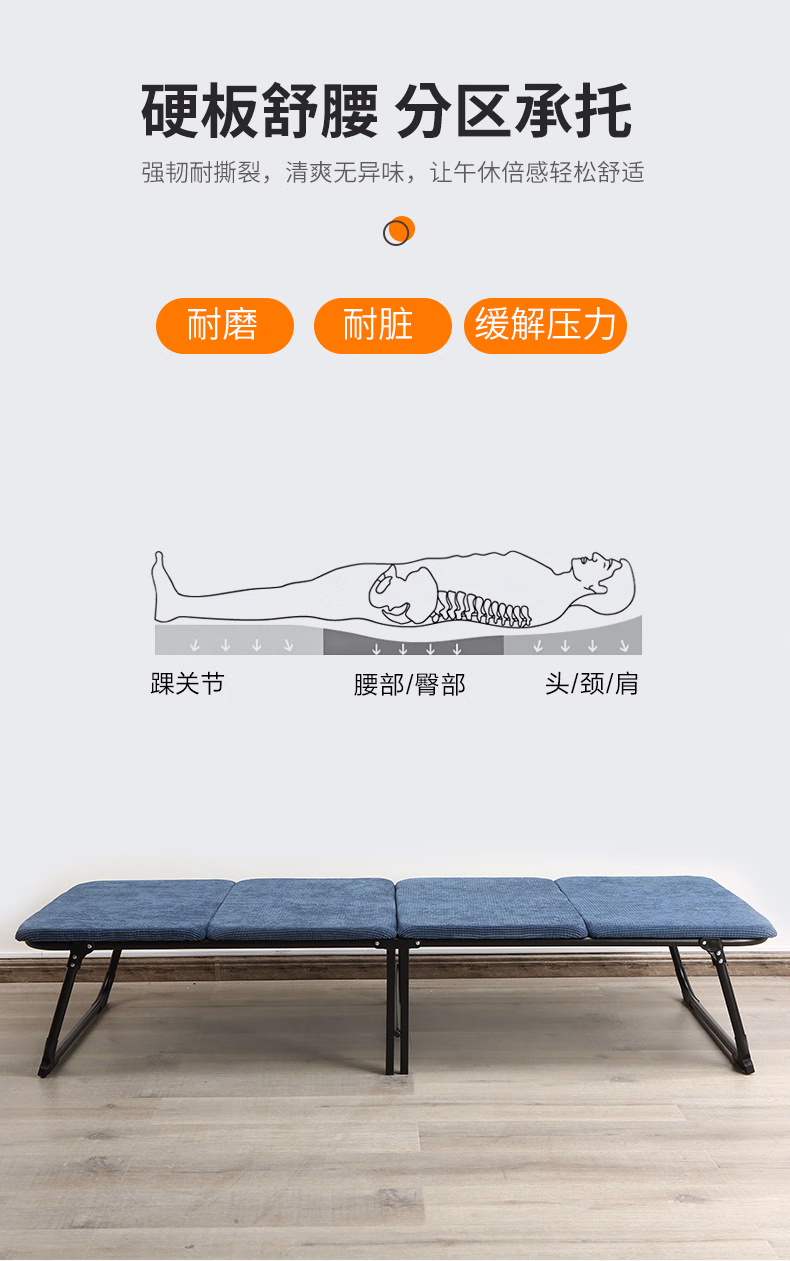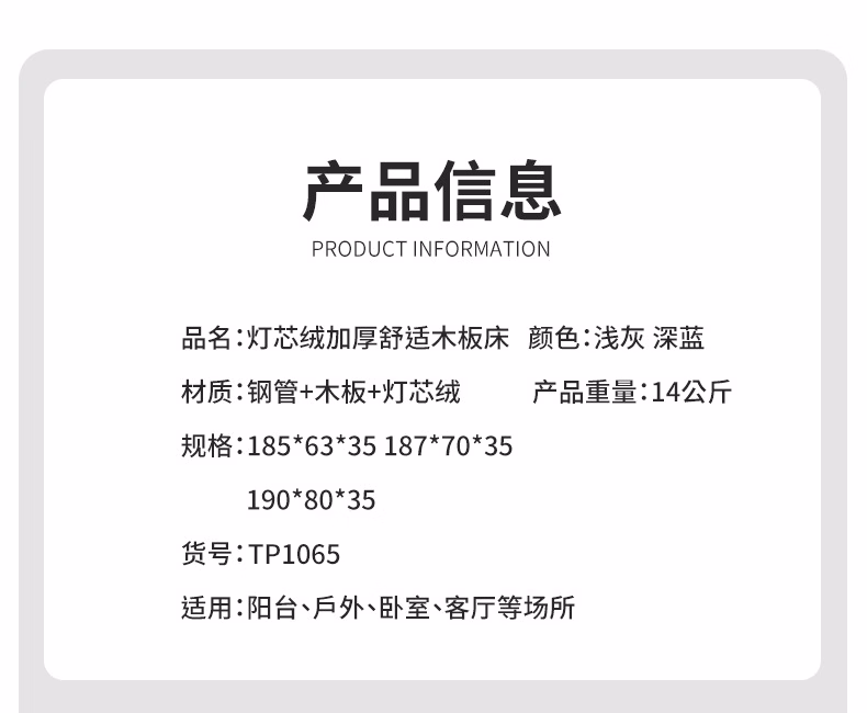 三极户外(Tri-Polar) TP1065 185*63*35cm 钢管+木板+灯芯棉 深蓝 折叠床 (计价单位:把) 深蓝