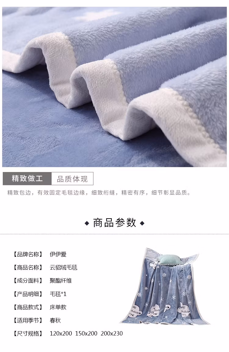 伊伊爱 SHR-17XK-150T-2 云貂绒珊瑚绒毯 150*200cm 毛毯 (计价单位:件) 蓝色