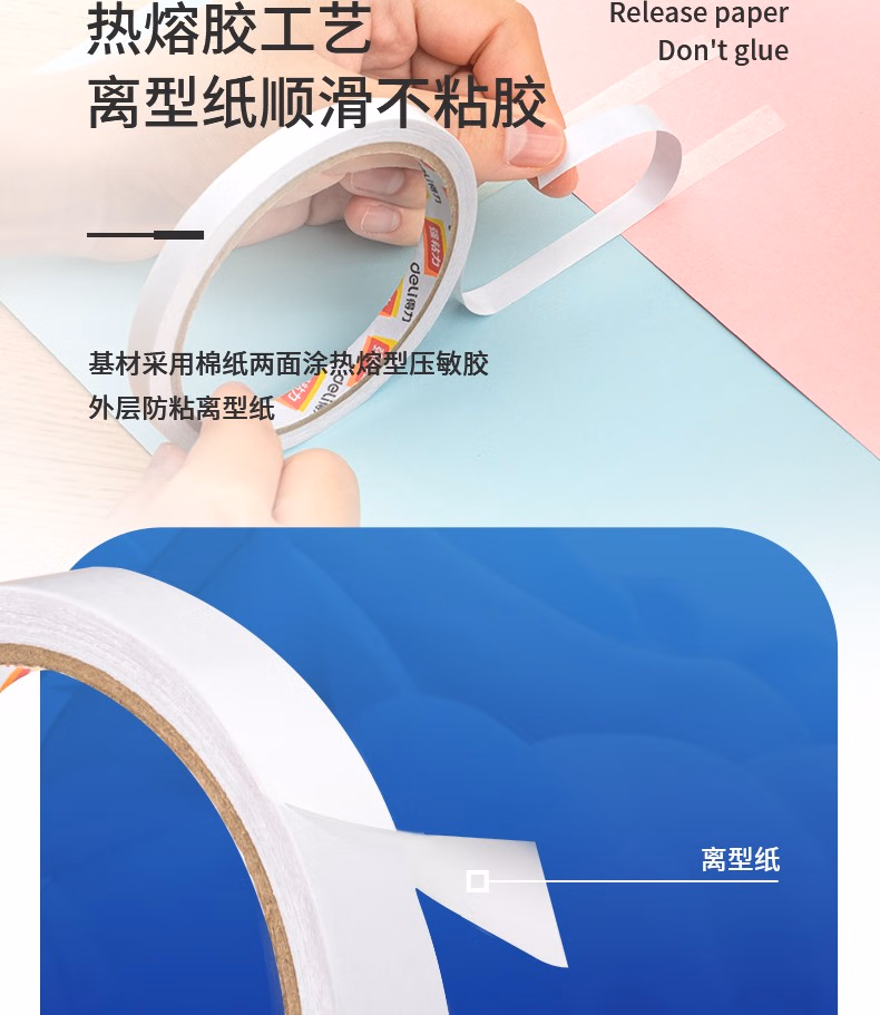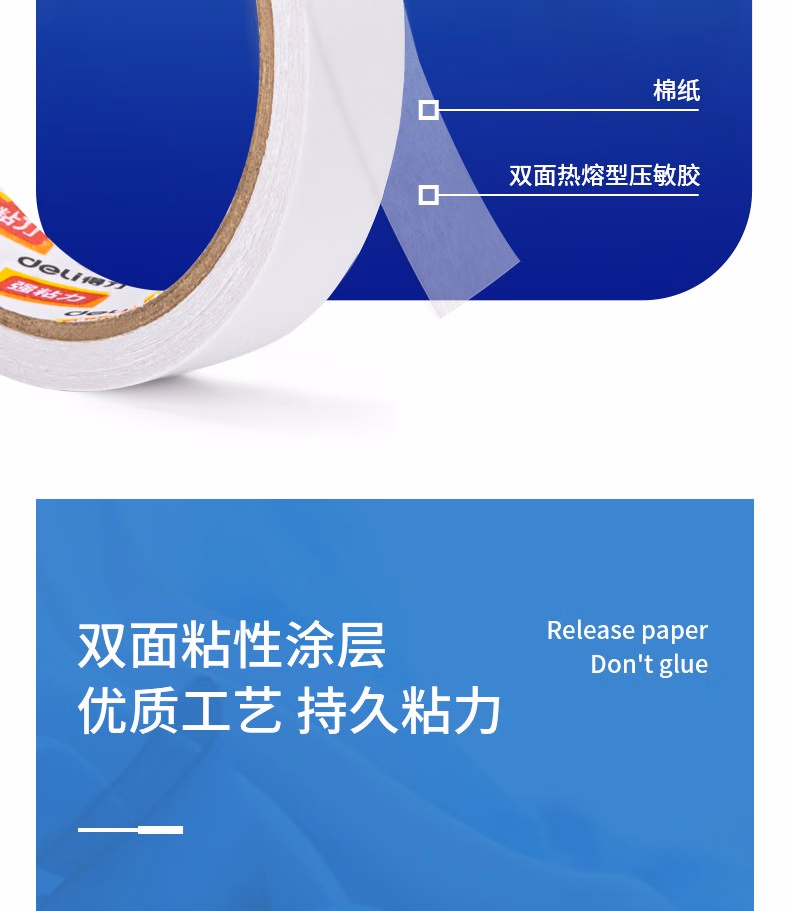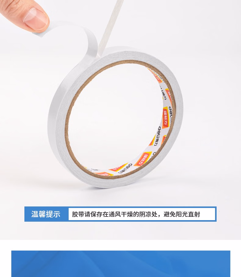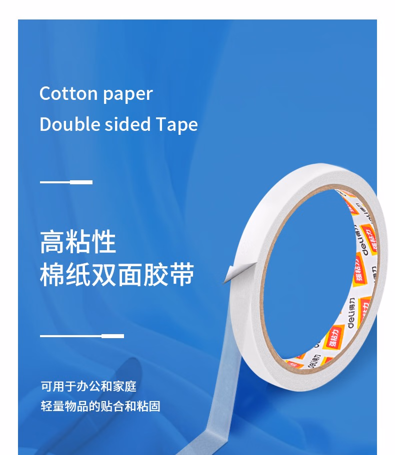 得力(deli) 30405 12mm*10y 棉纸双面胶带 (计价单位:袋) 白色