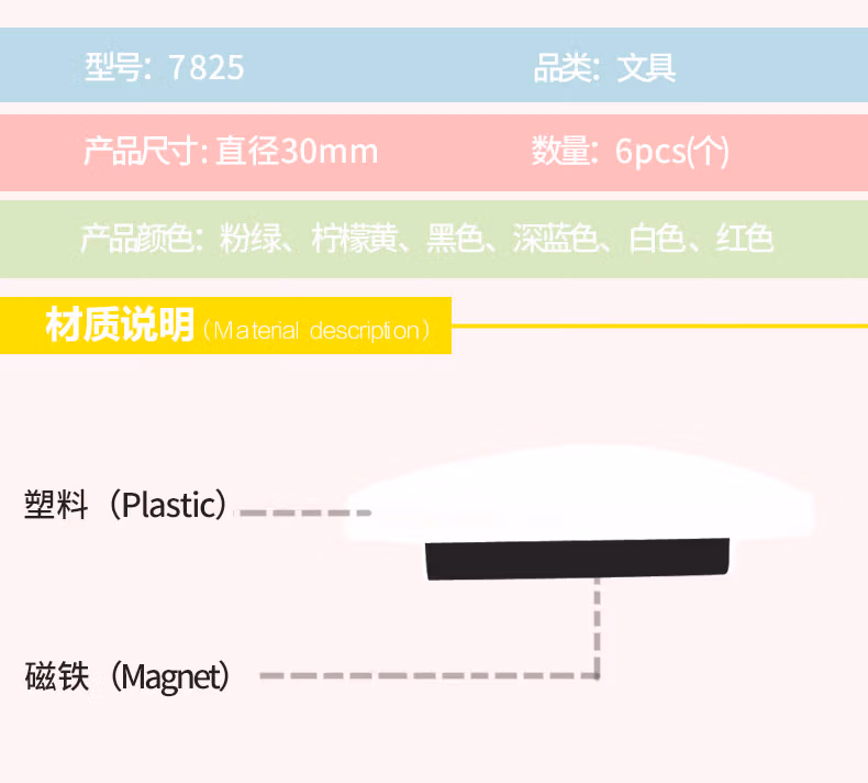 得力7825磁钉φ30mm(混)(6个/卡)