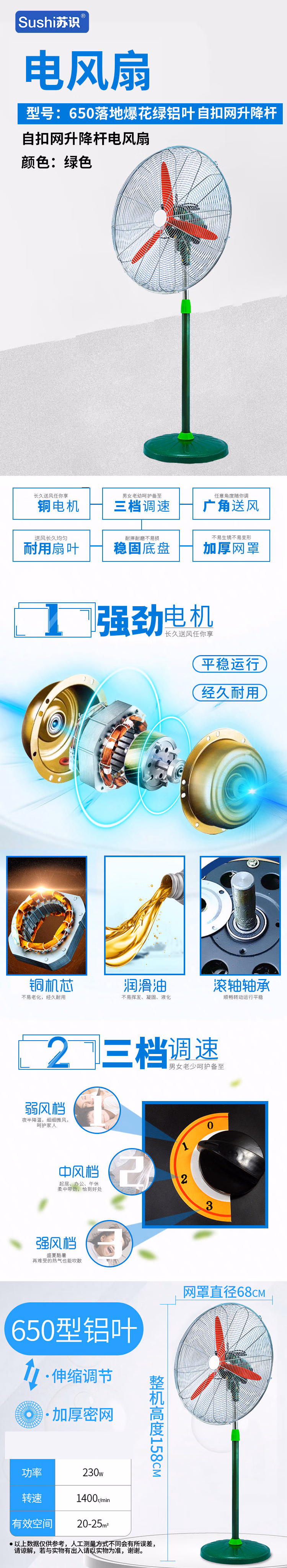 • 商品名称:苏识 650落地爆花绿铝叶 自扣网升降杆 电风扇 (计价单位:台) 绿
