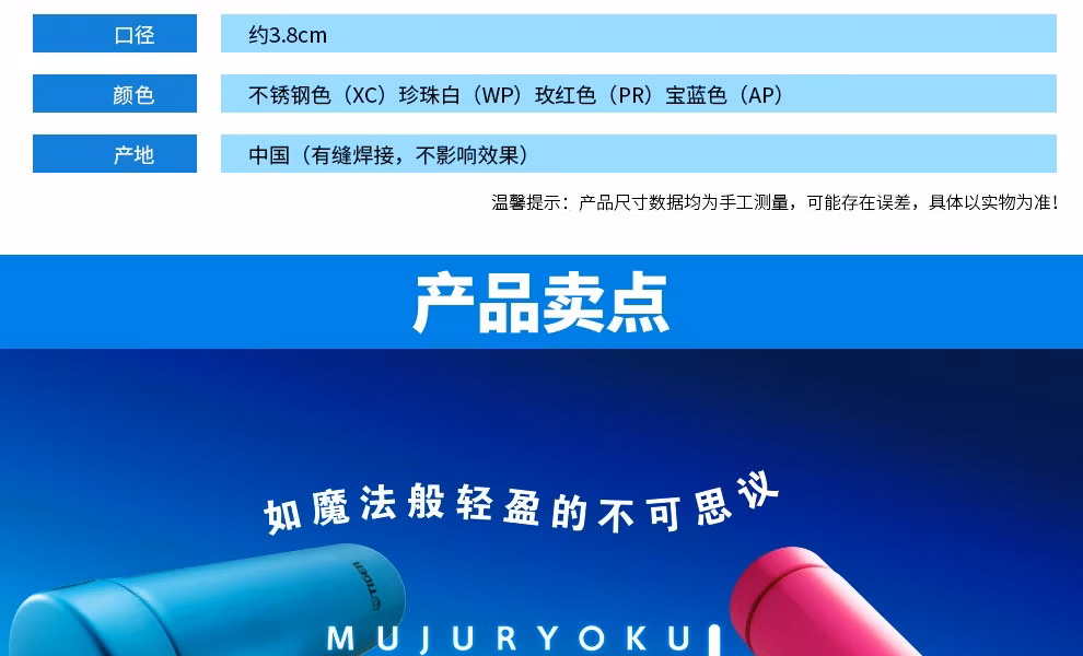 • 杯身主体材质:304不锈钢