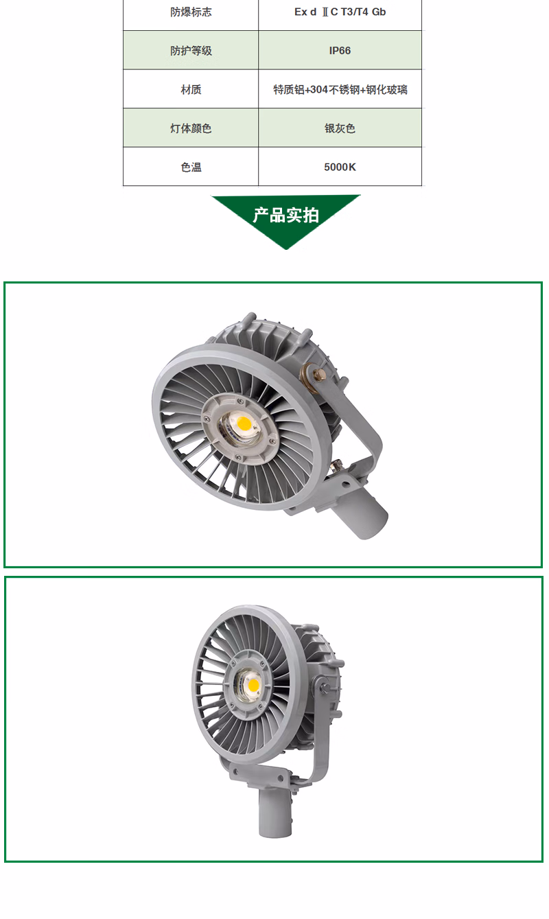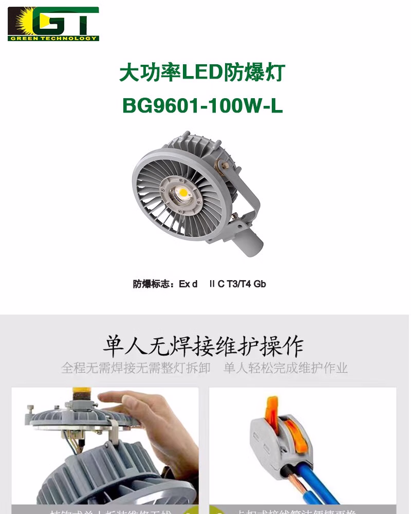 吉特(GT) BG9601-100W-L 100W IP66 Ex d ⅡC T3/T4 Gb 电压180-295VAC LED 色温5000K 大功率LED防爆灯 (计价单位:盏) 银灰色