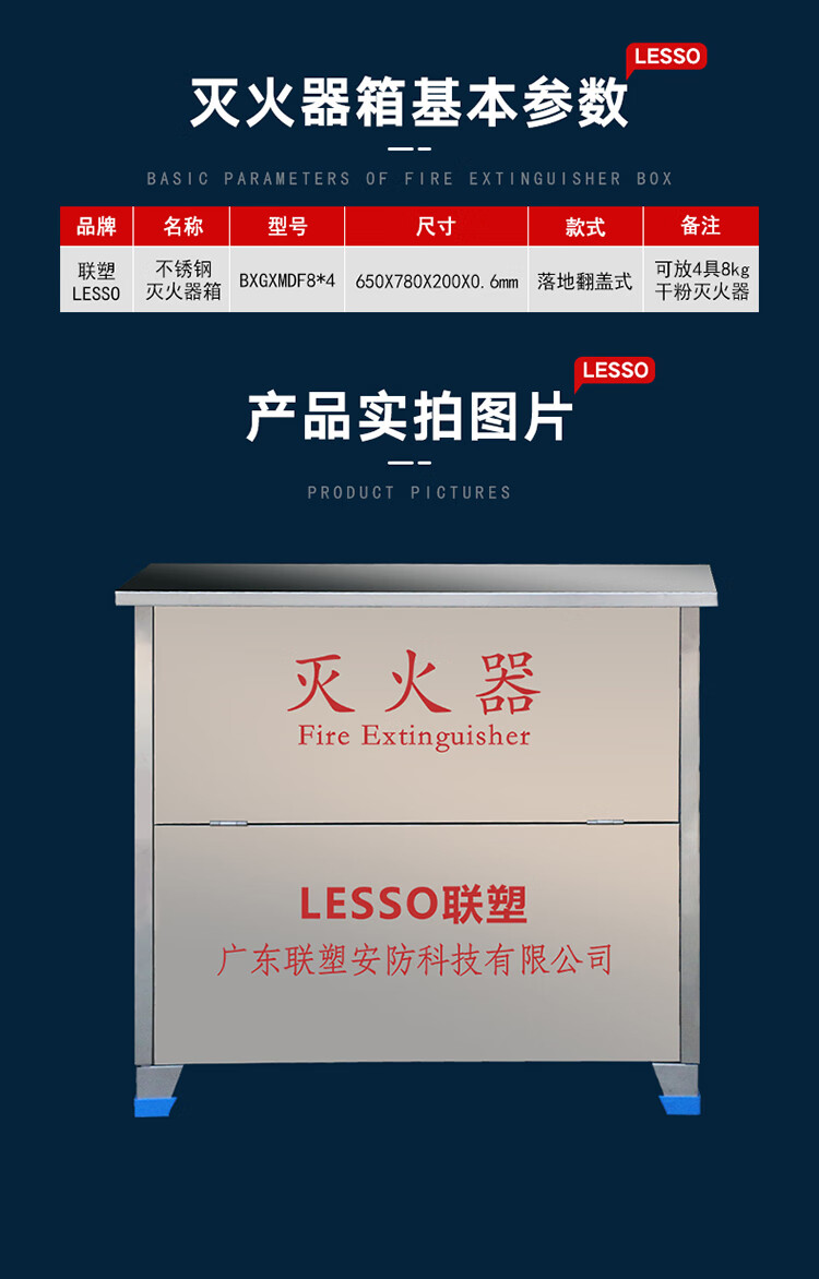 联塑(LESSO)BXGXMDF8*4 不锈钢灭火器箱650×780×200×0.6 可放4个8kg干粉灭火器 空箱 单位:个