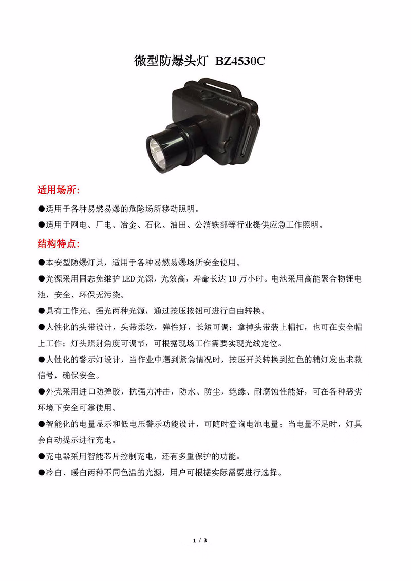• 商品名称:BZ4530C 微型防爆头灯 3W 3.7V 6000K IP65 11h(计价单位:套)黑色