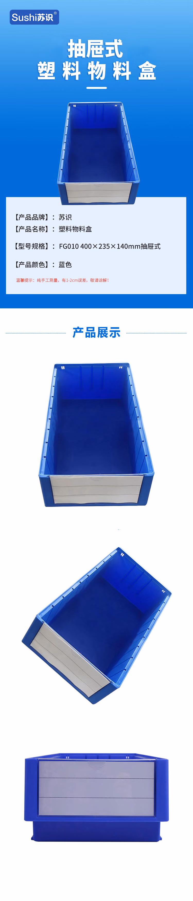 苏识 FG010 400×235×140mm抽屉式 塑料物料盒 (计价单位:个) 蓝色