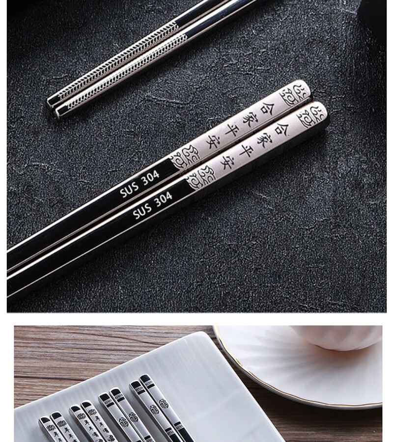 晟泰邦 不锈钢筷子 防滑金属筷子耐高温消毒 长度23cm 10双装 单位:组