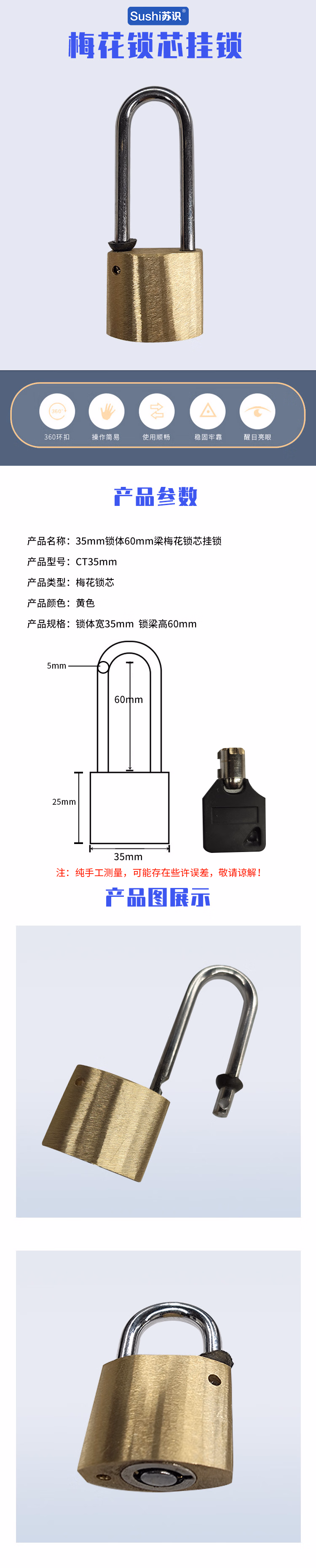 苏识 CT35mm锁体60mm粱 挂锁 (计价单位:个) 黄色
