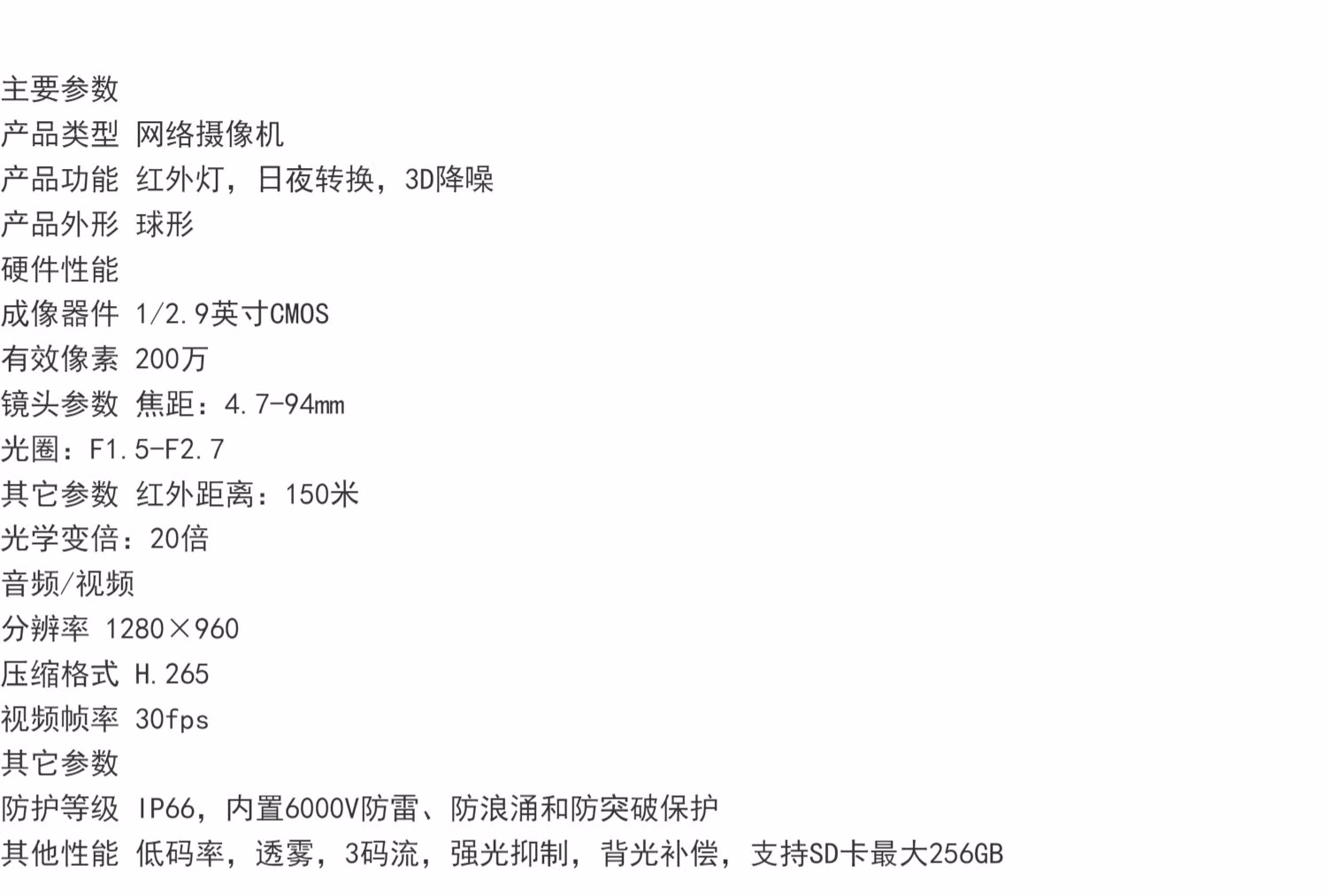 • 商品名称:大华DH-SD6C82FB-GN 200万像素红外夜视高清智能球机网络摄像机 白色 无 1080p