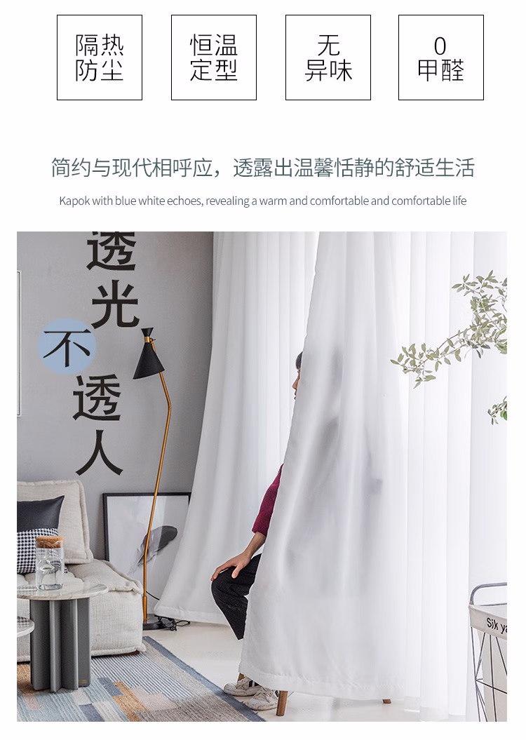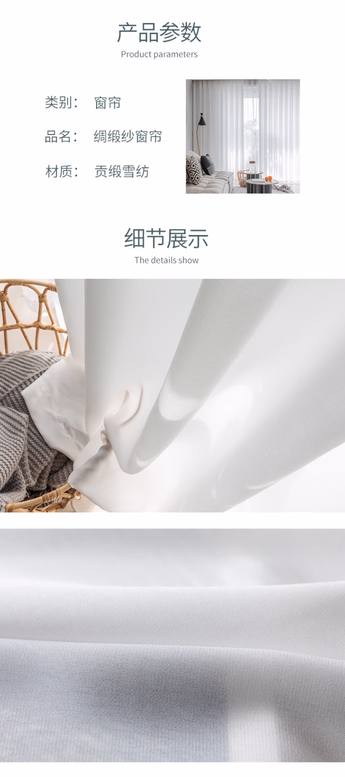 伊伊爱 CL0SX02000015 1M*2.7M 绸缎纱 窗帘 1.00 米/片 (计价单位:片) 白色