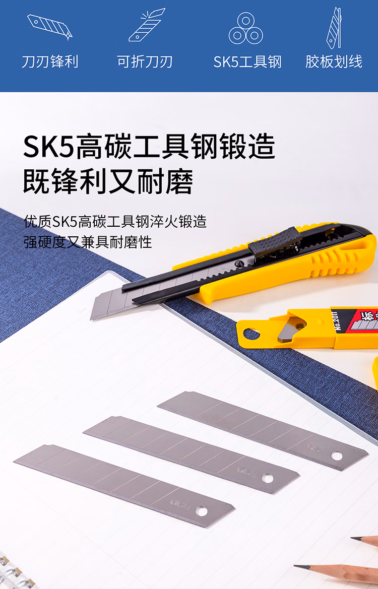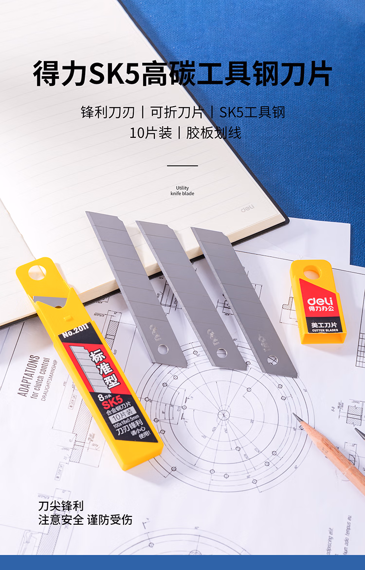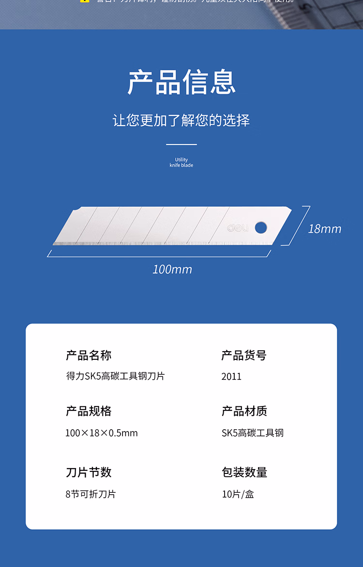 得力(deli) 2011 18mm 大号加厚合金钢 美工刀刀片 10.00 把/盒 (计价单位:盒) 银色