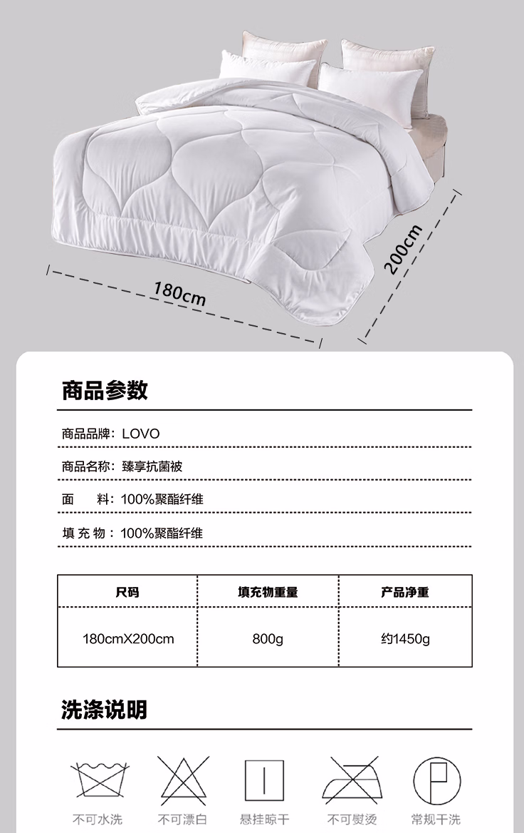 乐蜗(LOVO) LVXB202404 180*200cm 臻享抗菌 被子 (计价单位:件) 米白