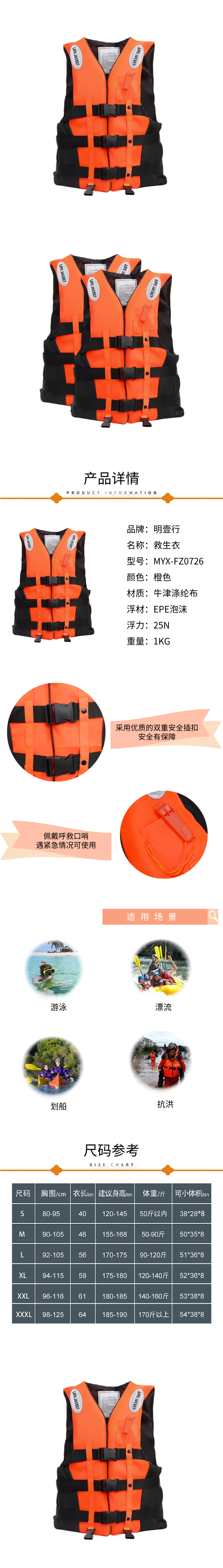 明壹行 MYX-FZ0726 救生衣 1.00 套/件 (计价单位:件) 橙色