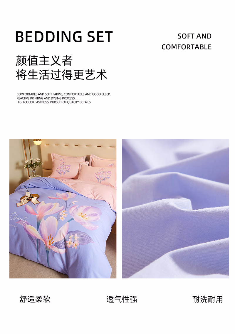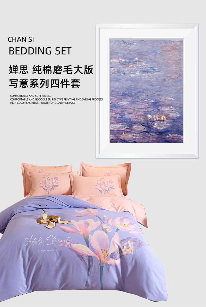 婵思 CMB0220086 220*240cm 纯棉 磨毛 大版 写意系列 四件套 (计价单位:套) 秋月午后