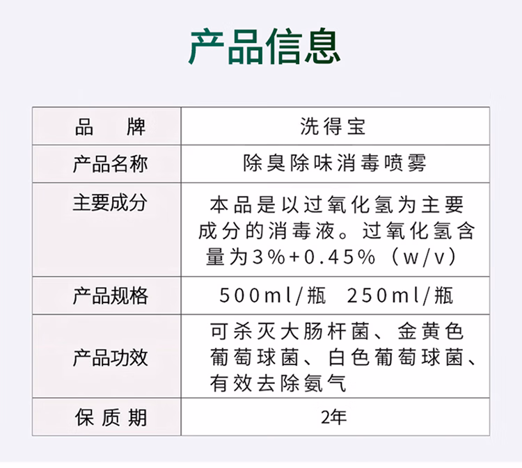 洗得宝 除臭除味 清洁消毒 500ml/瓶 除臭除味消毒喷雾(过氧化氢消毒液) (计价单位:瓶)