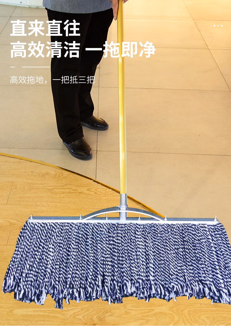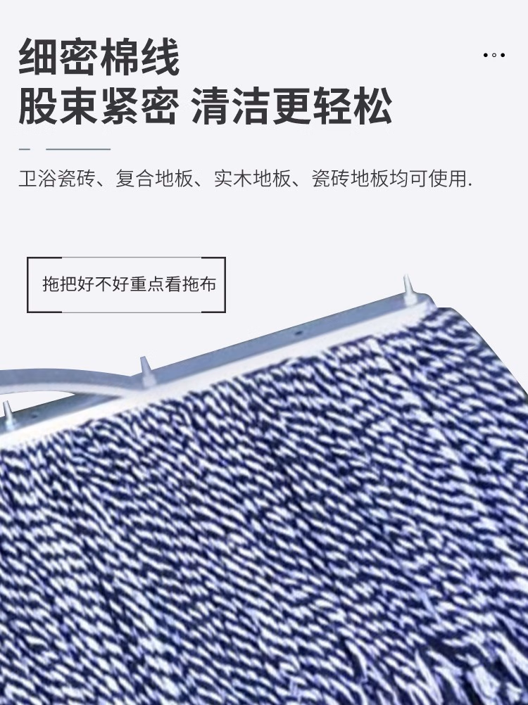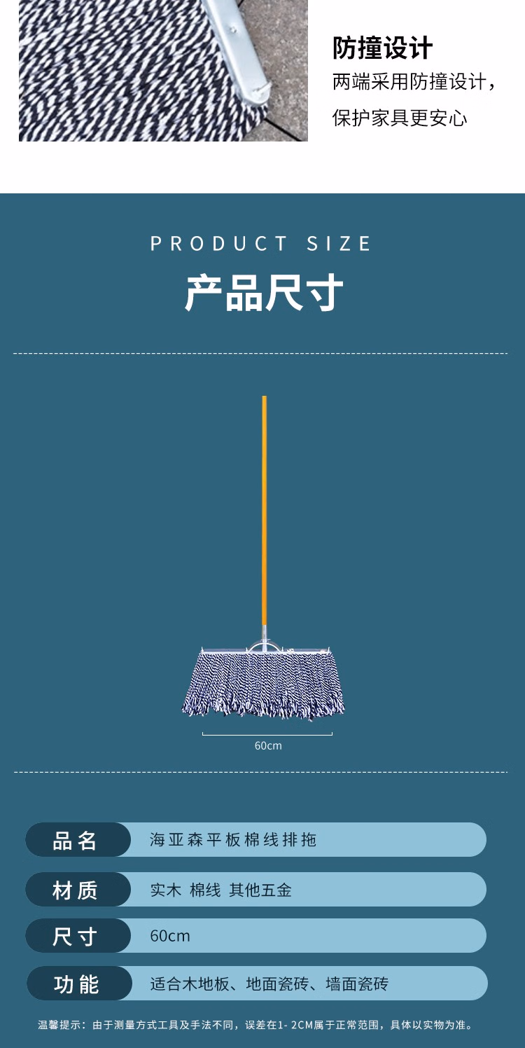海亚森 工厂平板拖把老式木杆棉线 排拖60cm,1把/捆 TK-2004 墩布 (计价单位:把) 蓝白