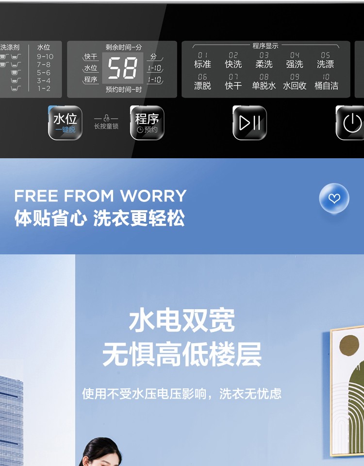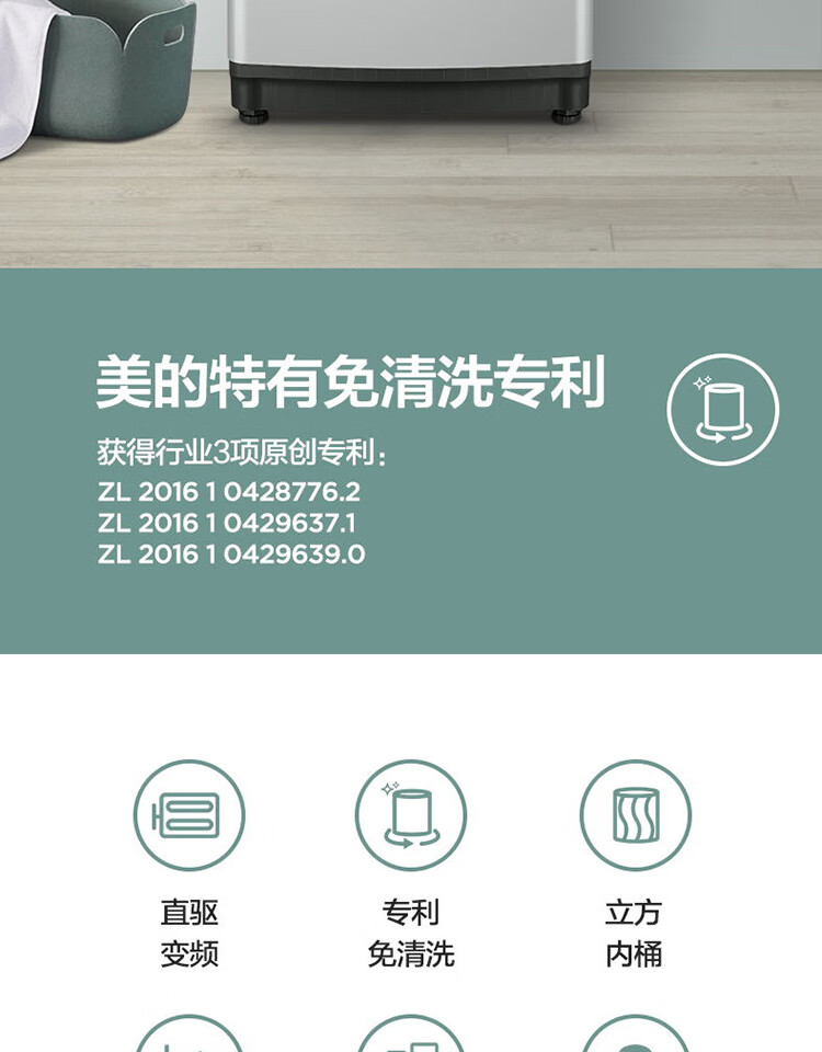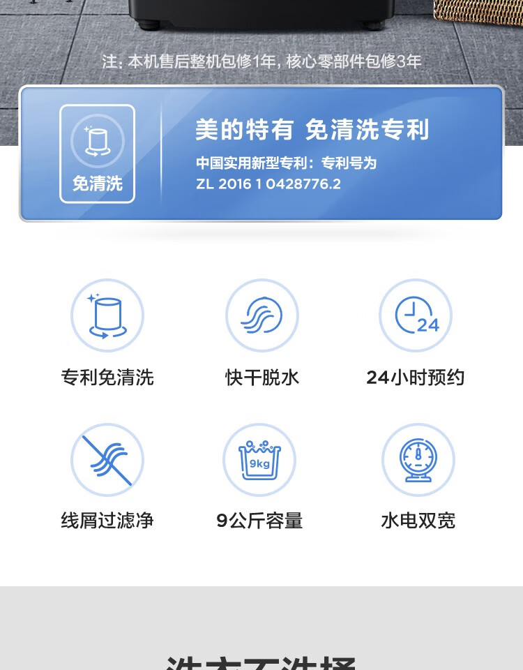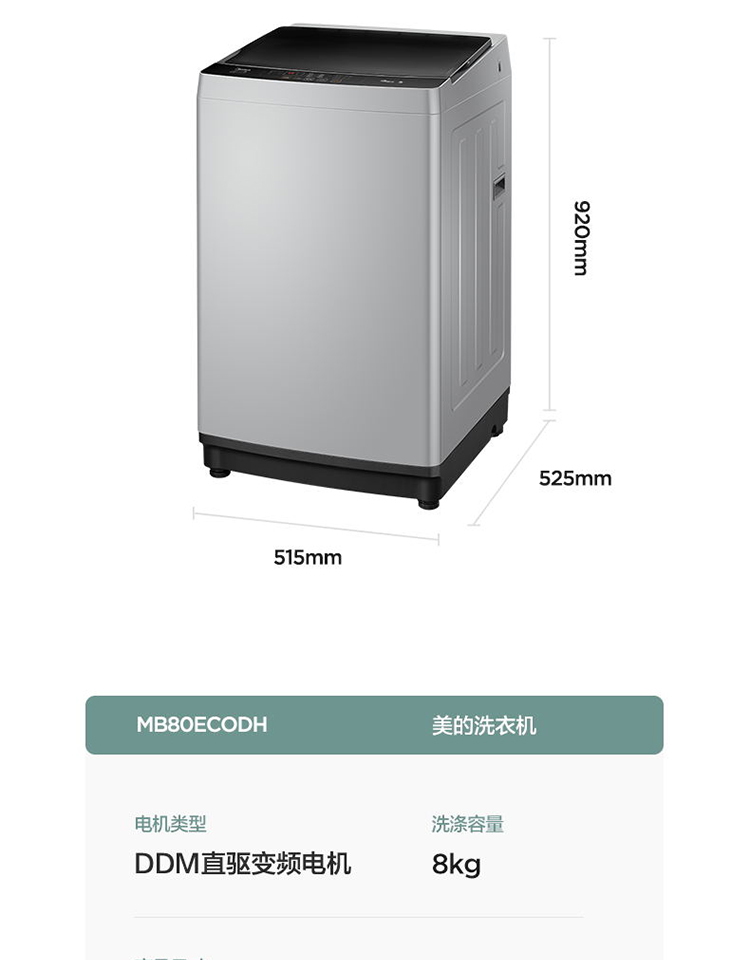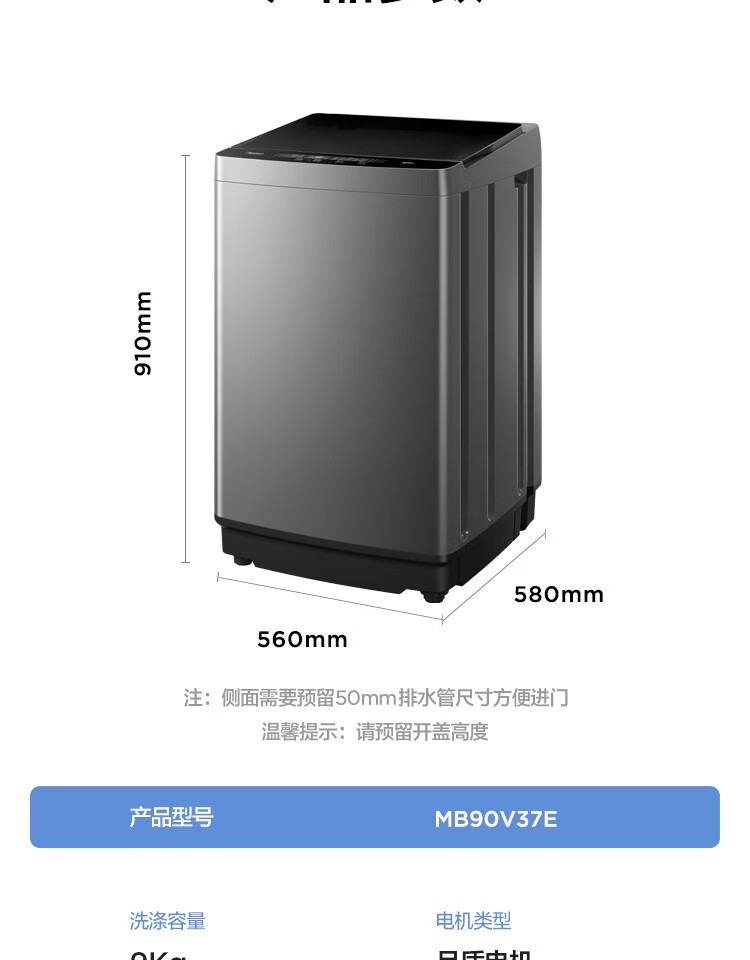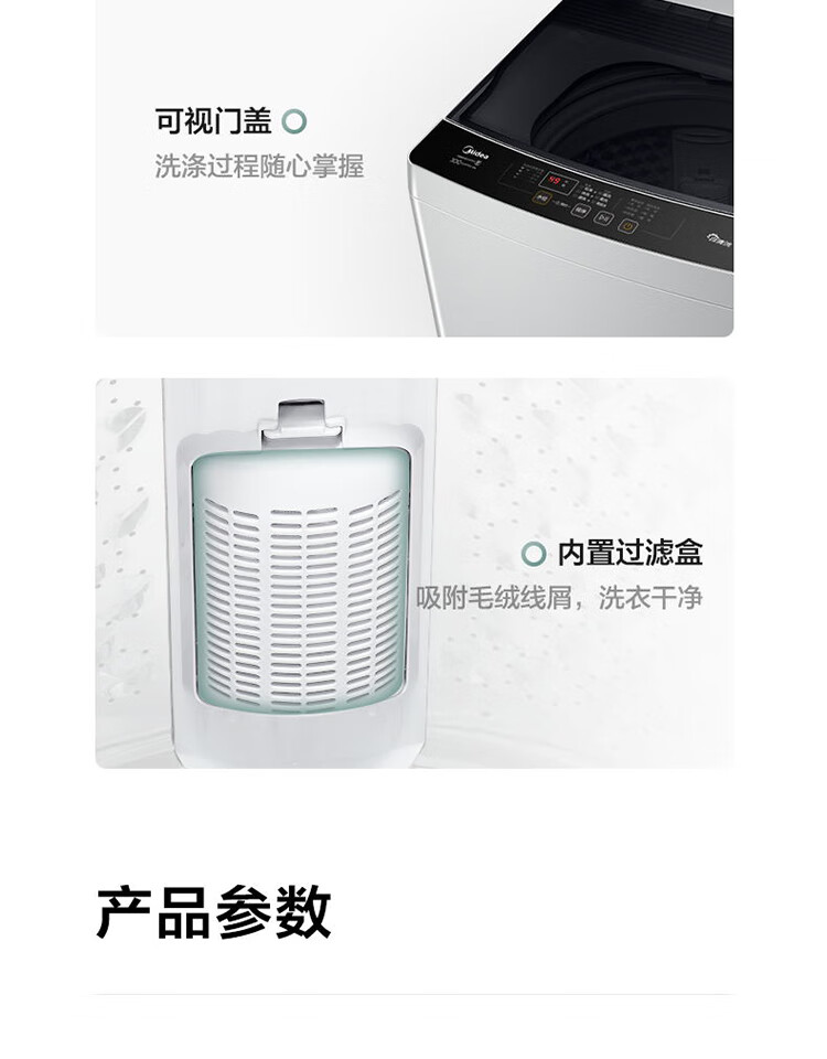 美的(Midea)波轮洗衣机全自动家用洗衣机一键脱水 健康自清洗 安心童锁节能省电 MB65-1000H 单位:台