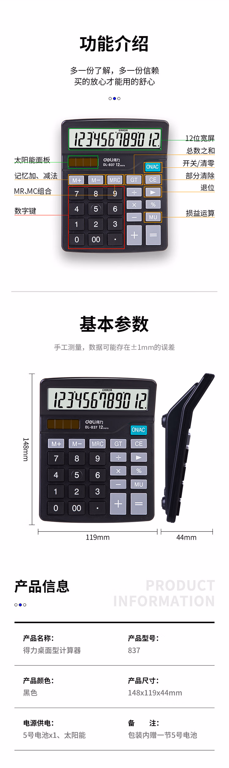 得力(deli) 837 桌面型 计算器 (计价单位:台) 黑色