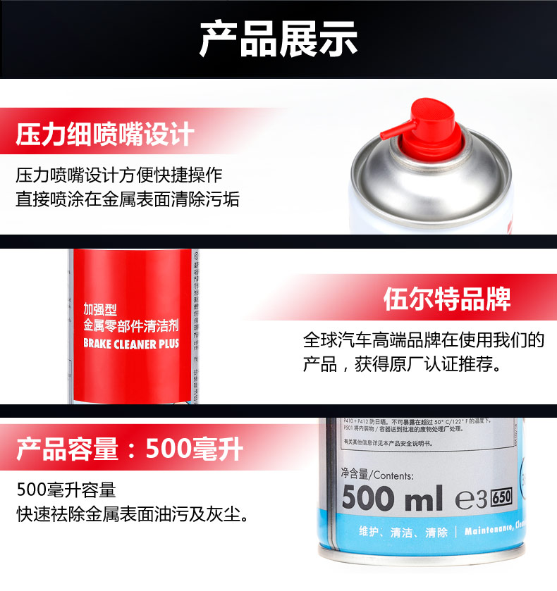 伍尔特加强型金属零部件清洁剂 刹车片卡钳刹车盘防锈防腐消音-500ML 单位:瓶