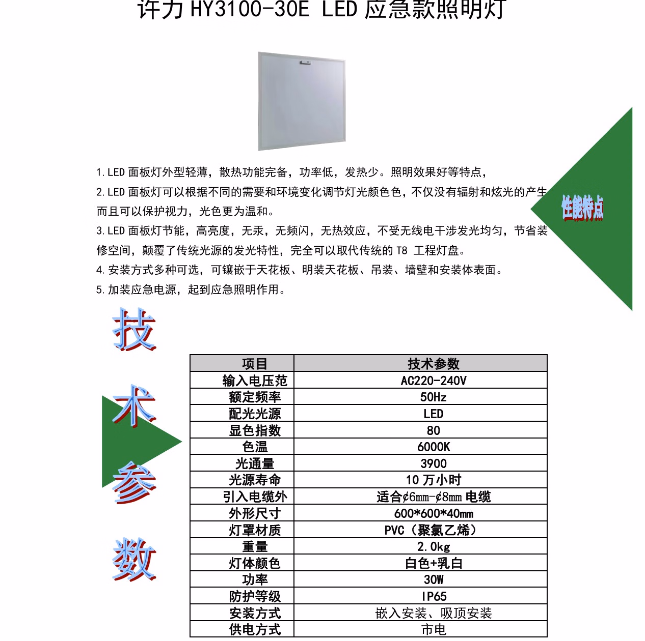 许力 HY3100-30E 30W IP65 220V 6000K 应急款照明灯 1.00 台/个 (计价单位:个) 白色