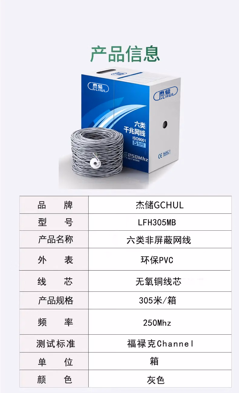 杰储(GCHUL) LFH305MB 六类非屏蔽 网线 305.00 米/箱 (计价单位:箱) 灰色