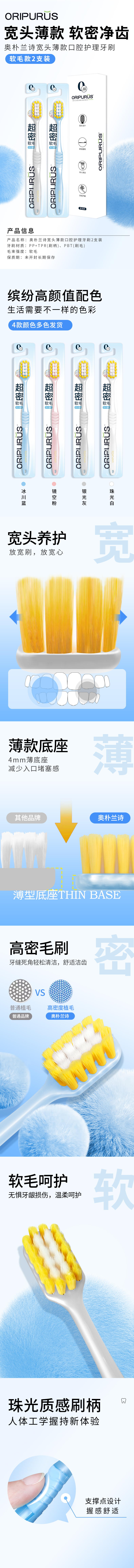 奥朴兰诗 宽头薄款口腔护理软毛 2支装 牙刷 2.00 支/组 (计价单位:组)
