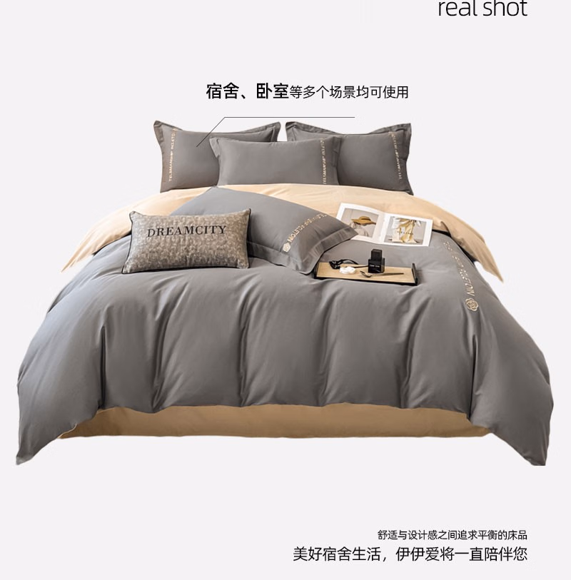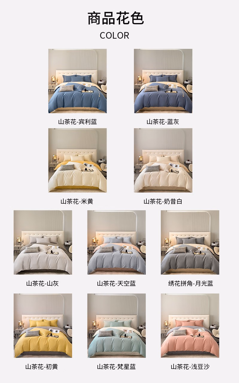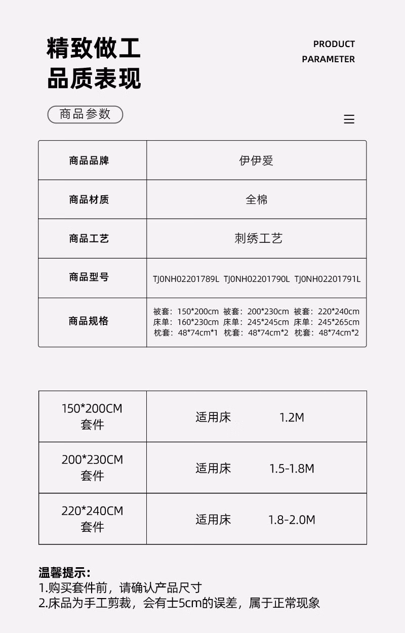 伊伊爱 TJ0NH02201789L 150*200cm 山茶花长绒棉刺绣双拼三件套 床上套件 (计价单位:套) 山茶花-宾利蓝