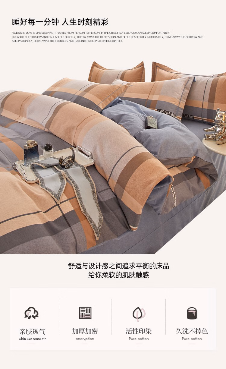 伊伊爱 TJ0HJC2302013 /200*230cm 臻棉磨毛简约四件套 (计价单位:套) 极简咖