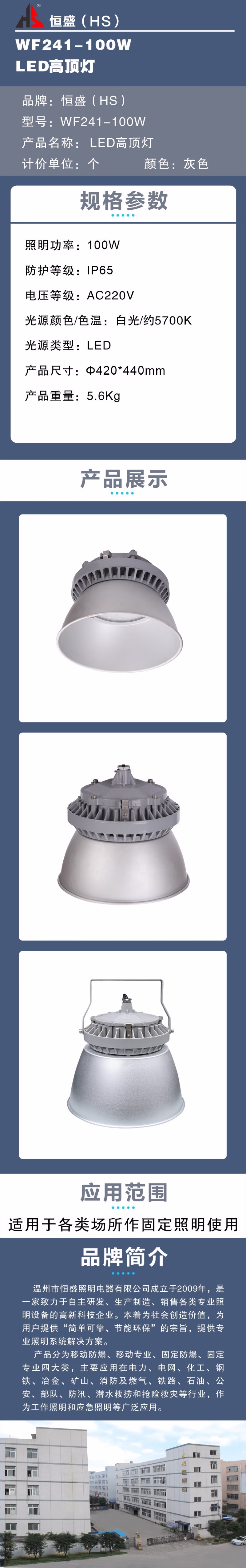 • 商品名称:恒盛(HS)WF241-100W LED高顶灯 (计价单位:个)灰色