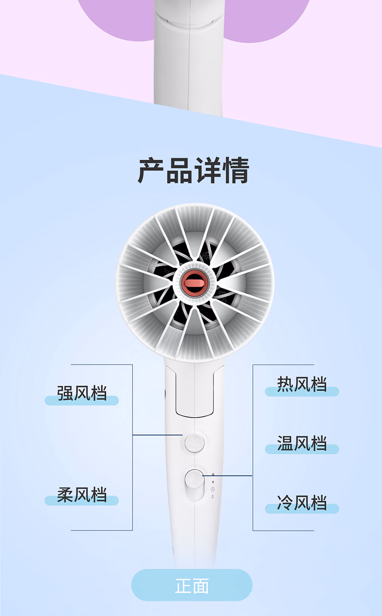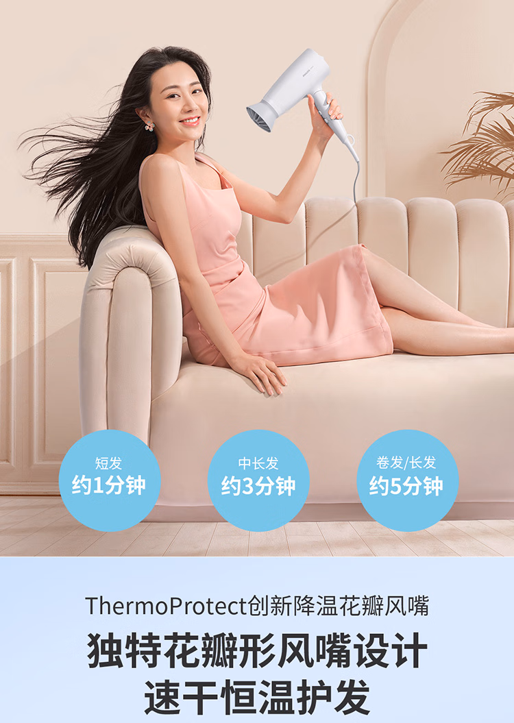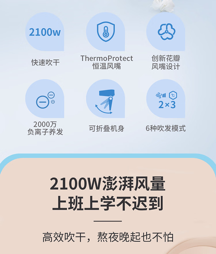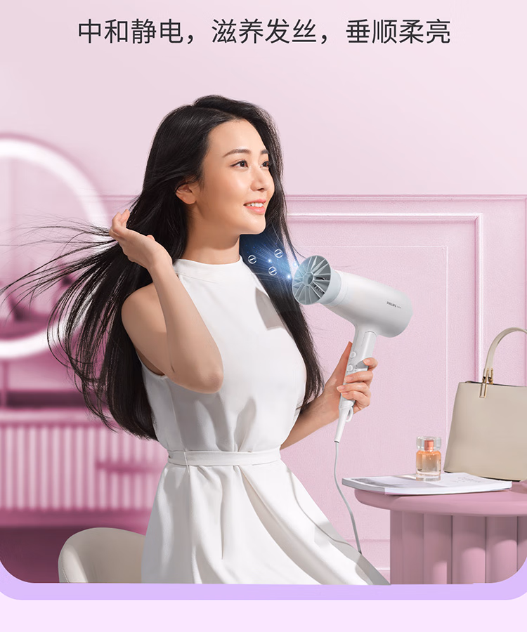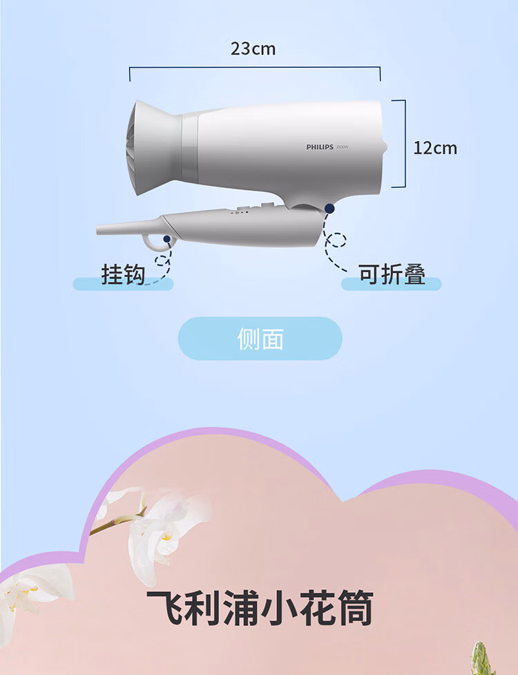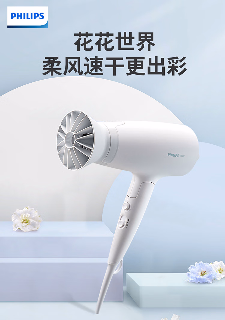 飞利浦(Philips) BHD378 3档风速 负离子 2100W 含上门 电吹风机 (计价单位:个) 白色